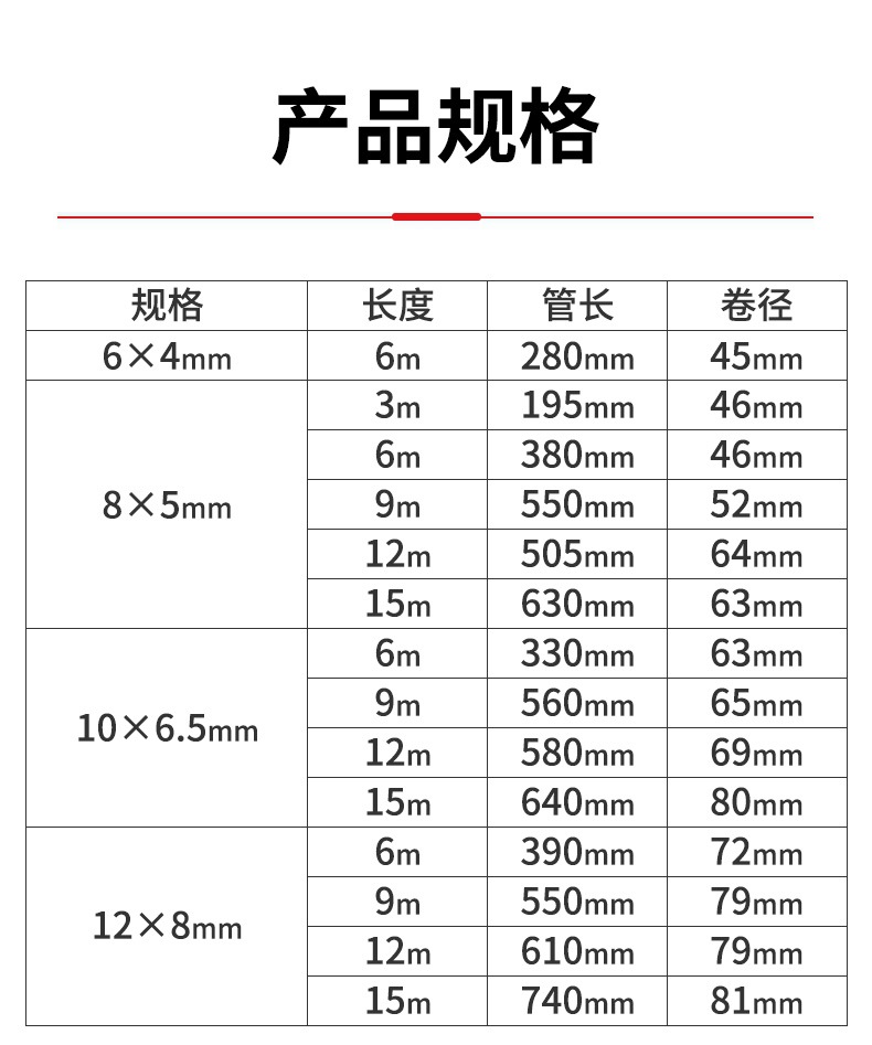• 빨간색 10x6.5-스프링 튜브 12m