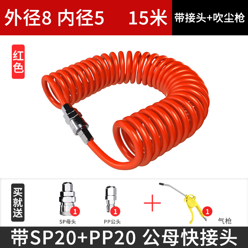 • 빨간색 12x8 스프링 튜브 15m [커넥터 및 에어건 포함]
