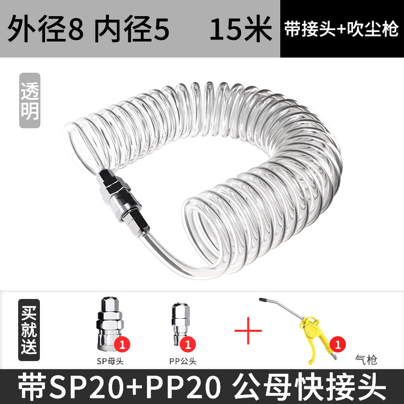 • 8x5 스프링 튜브 15m [커넥터 포함 에어건] 투명
