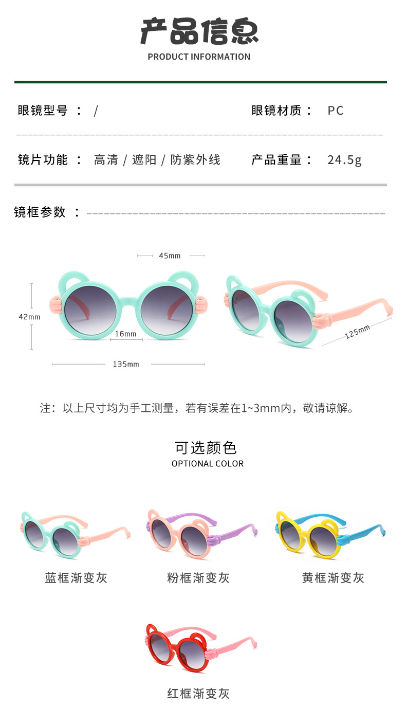 새로운 어린이 패션 선글라스, 만화 캐릭터 손바닥 모양 액세서리 선글라스, 귀여운 아기 트렌디 장식 선글라스