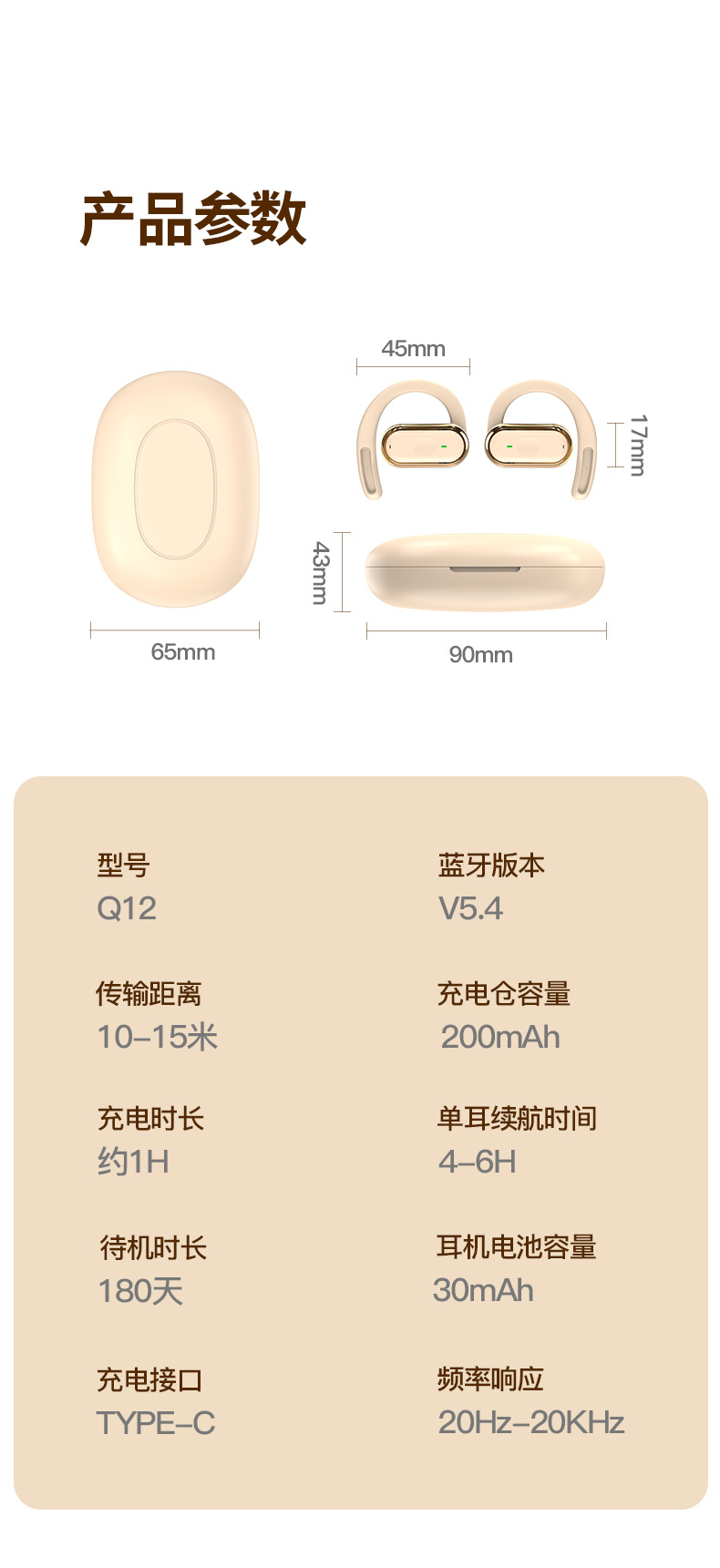 새로운 무선 블루투스 헤드셋 오픈형 귀걸이형 초장기 배터리 수명 조절 가능한 비인이어 OWS 스포츠 헤드셋