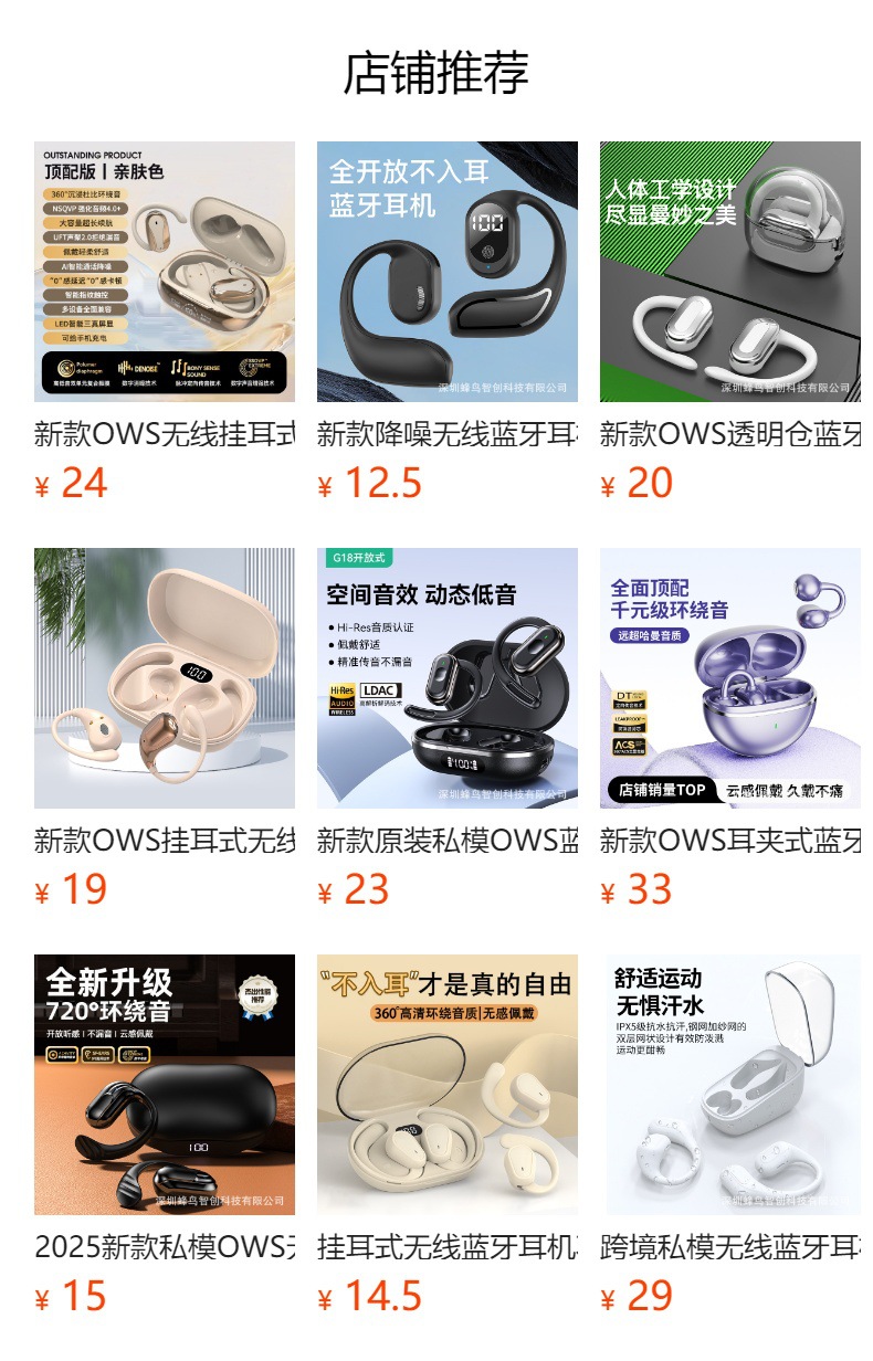 새로운 무선 블루투스 헤드셋 오픈형 귀걸이형 초장기 배터리 수명 조절 가능한 비인이어 OWS 스포츠 헤드셋스토어 가기