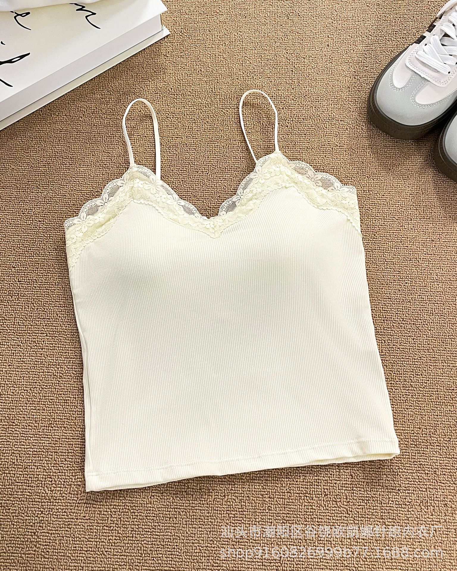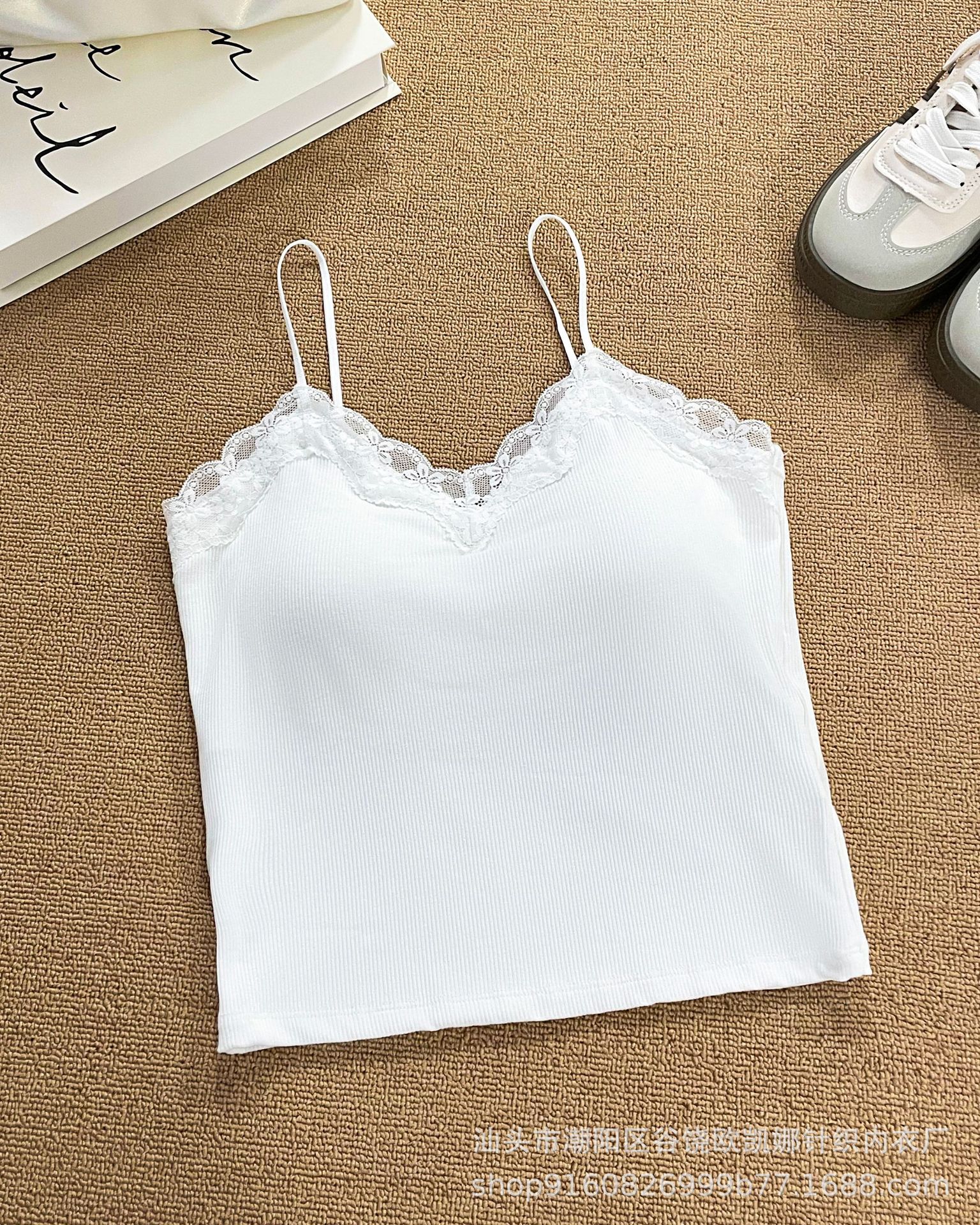 2025 년 봄과 여름 폭발 레이스 스티칭 슬링 조끼 벨트 가슴 패드 원피스 V 넥 얇은 어깨 벨트 여성을위한 아름다운 뒤