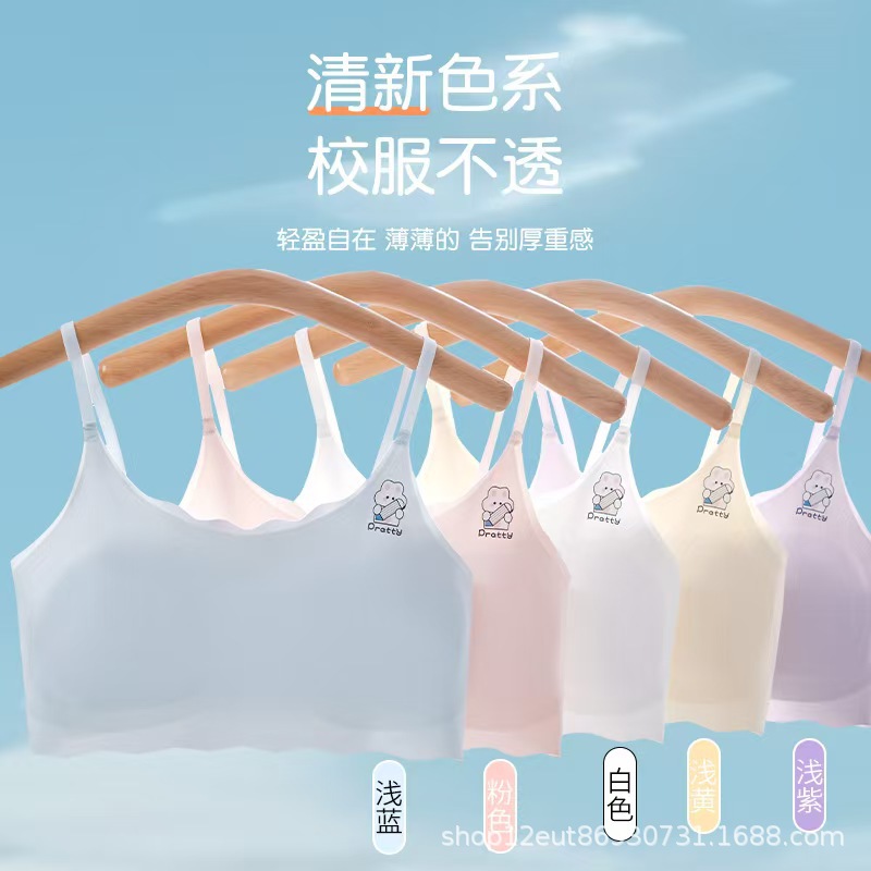 여름 발달 아이스 실크 여아 속옷 초등학교 아이들 여자 1 단계 안티 범프 고정 컵 작은 조끼스토어 가기
