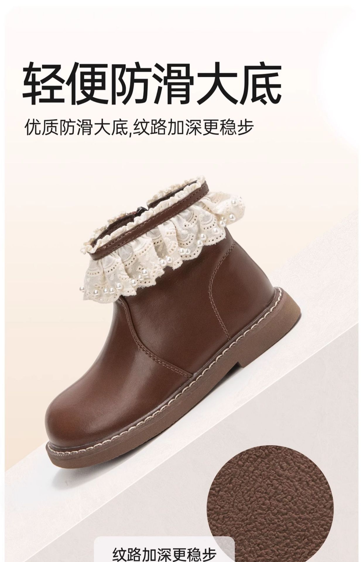 여자 부츠 블랙 마틴 부츠 2024 새로운 가을 및 겨울 어린이 부츠 기모 코튼 신발 소녀 공주 가죽 부츠