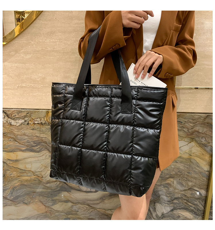 한국 스타일 경량 대형 가방 여성 유행 면 패딩 코트 토트 백 2025 새로운 도착 대용량 인기있는 어깨 가방스토어 가기