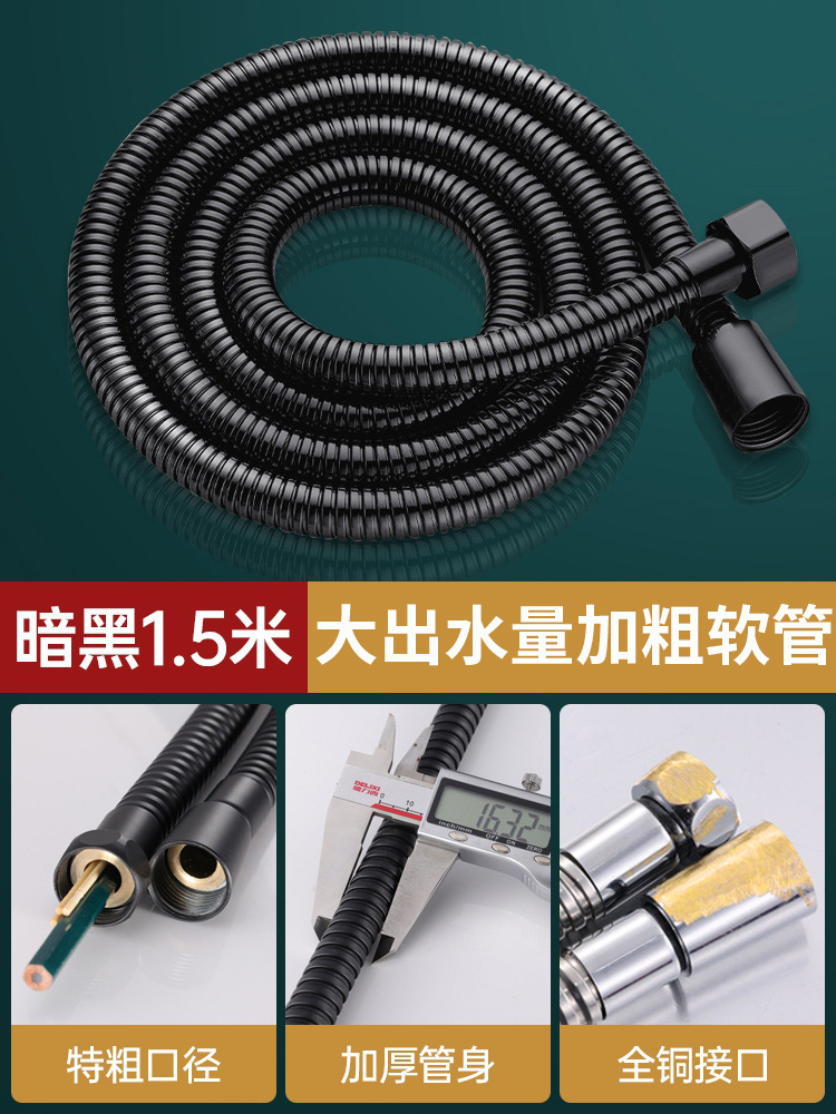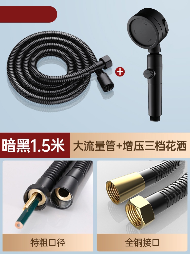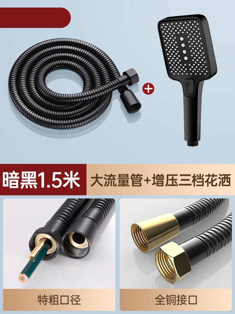 • ✅1.5m 검정색 대담한 큰 물 출력 암호화 방폭 파이프 + 3단 원형 부스터 샤워 헤드