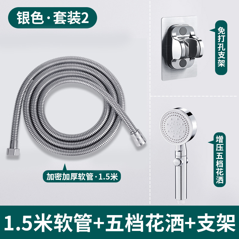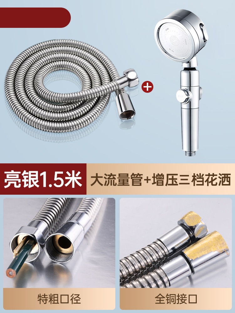 • ✅1.5m 은색 대담한 큰 물 출력 암호화 방폭 파이프 + 3단 원형 부스터 샤워 헤드