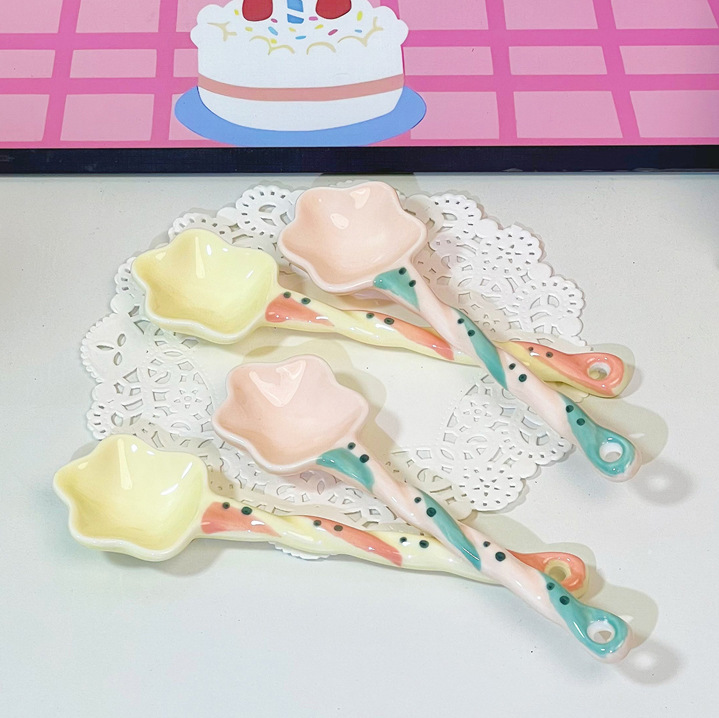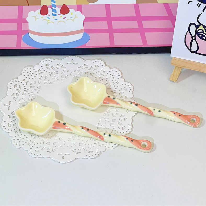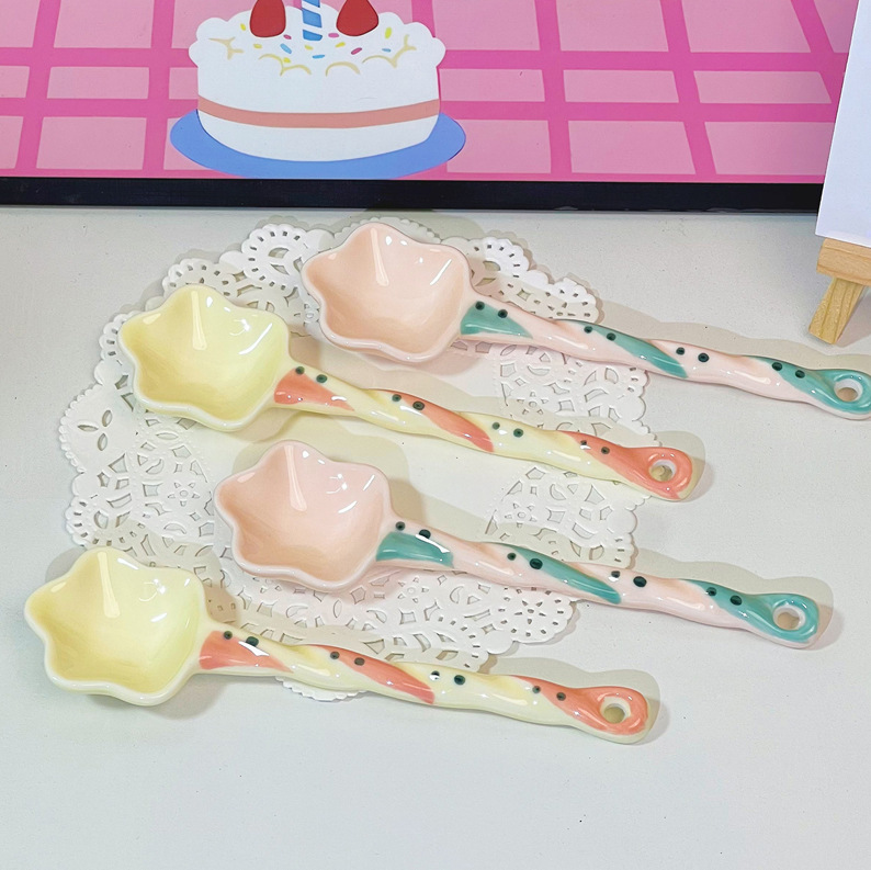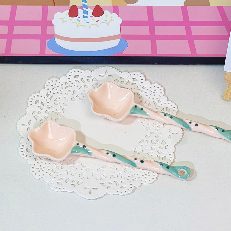 스타 고 가치 디저트 세라믹 긴 핸들 색상 손으로 그린 소녀 귀여운 창조적 인 숟가락 숟가락 혼합 숟가락