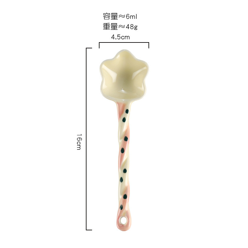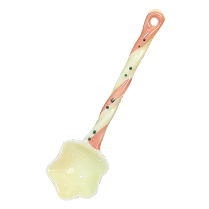 스타 고 가치 디저트 세라믹 긴 핸들 색상 손으로 그린 소녀 귀여운 창조적 인 숟가락 숟가락 혼합 숟가락스토어 가기