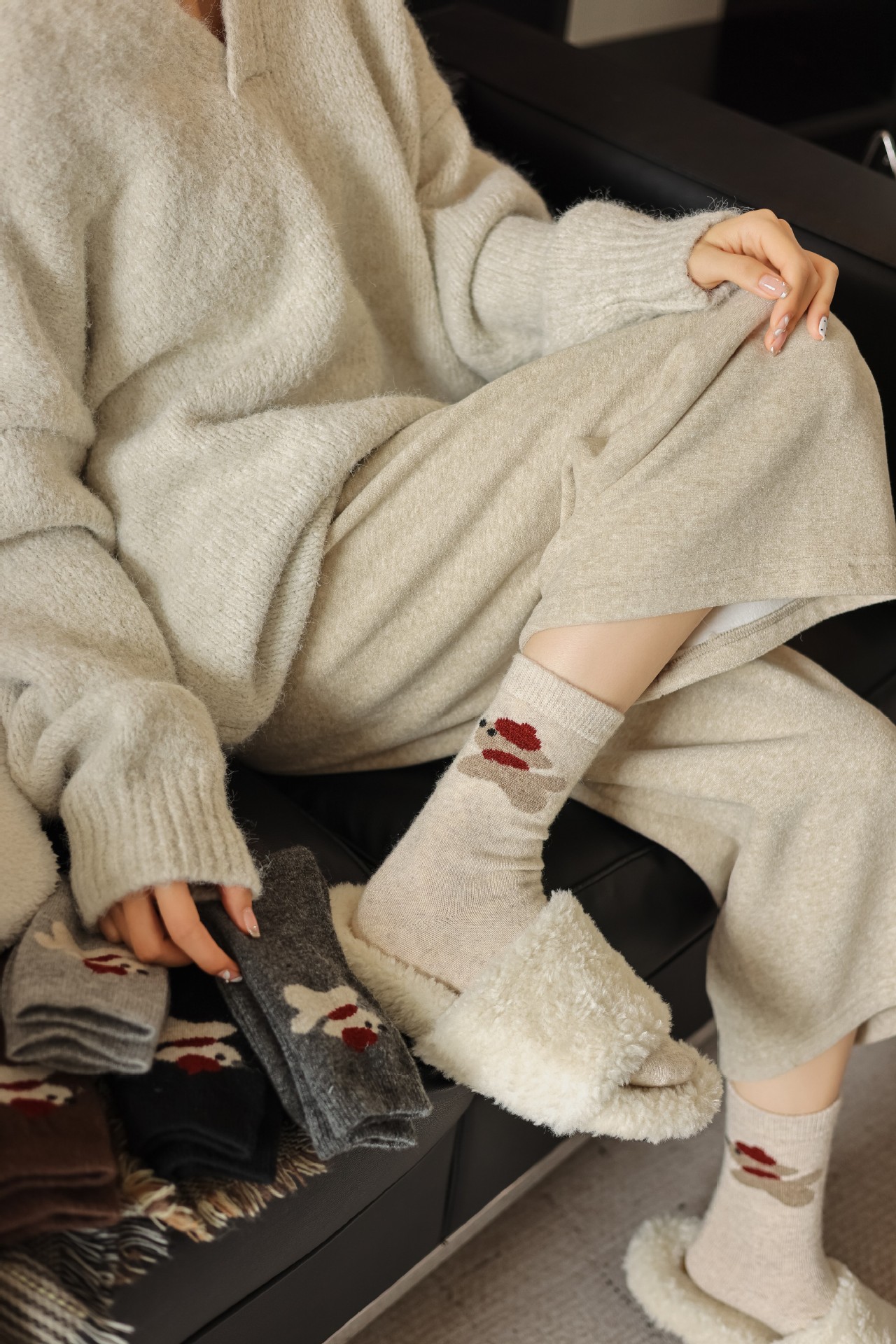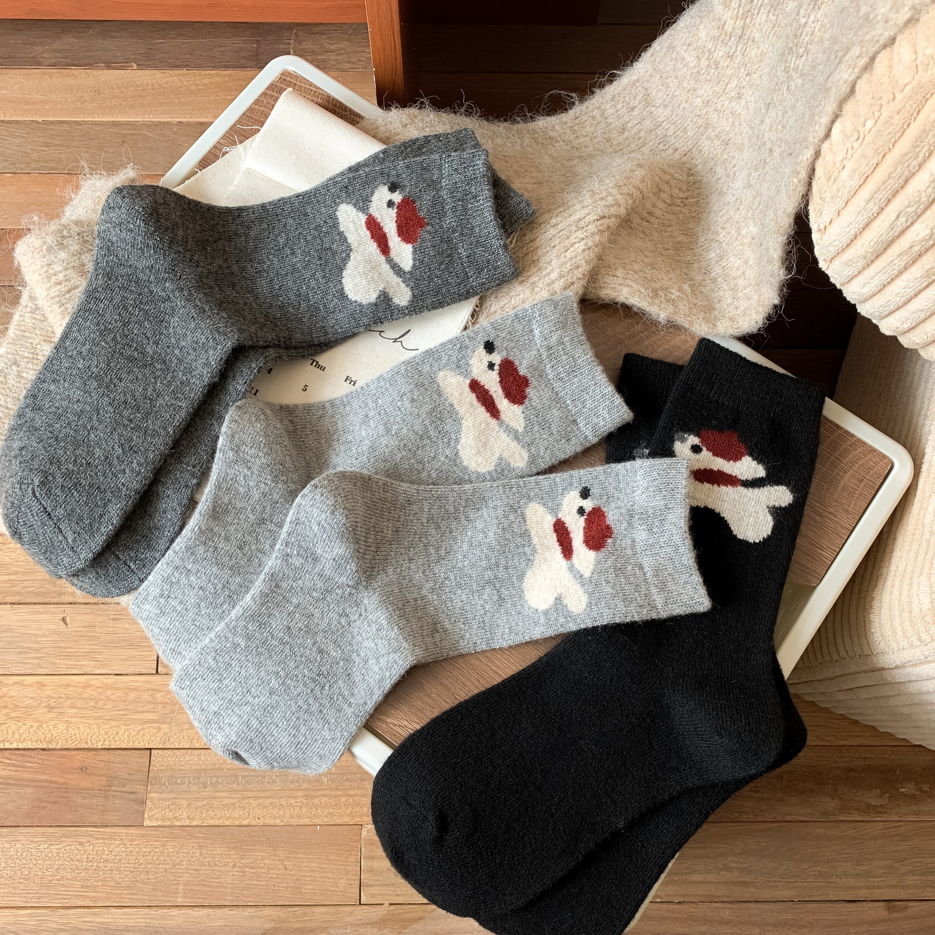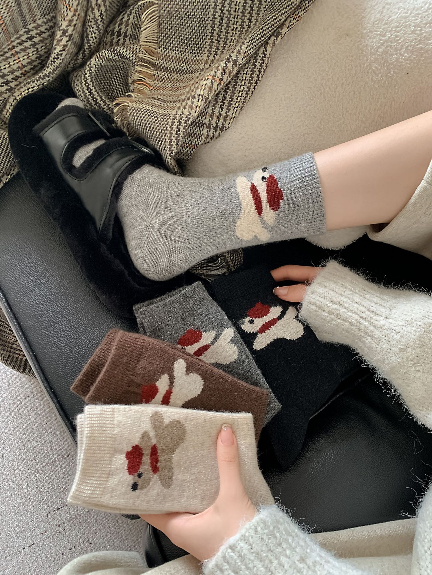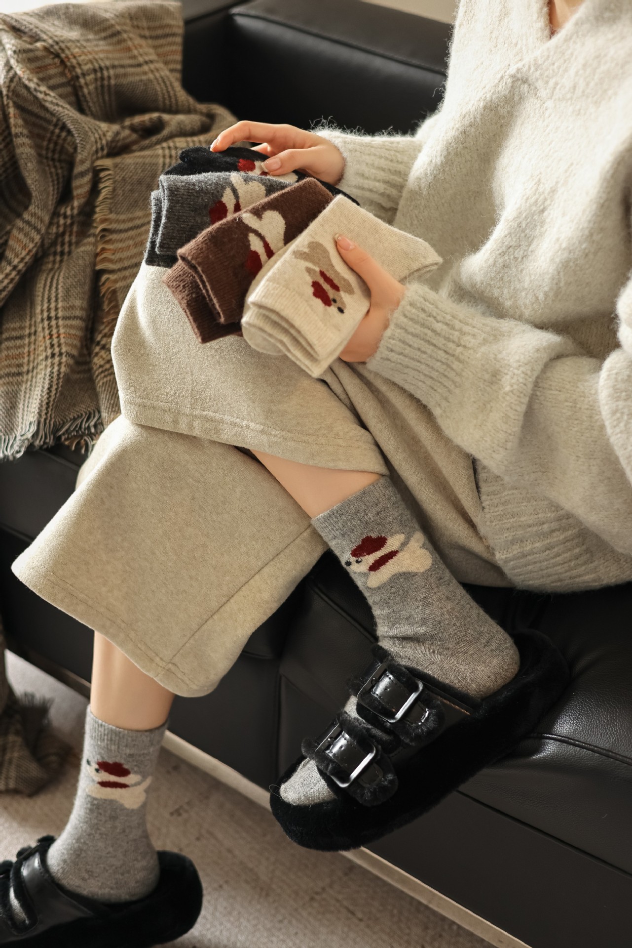 양모 귀여운 목 강아지 양말 여성의 중간 양말 가을과 겨울 두꺼운 캐시미어 따뜻한 겨울 스타킹 스택 양말