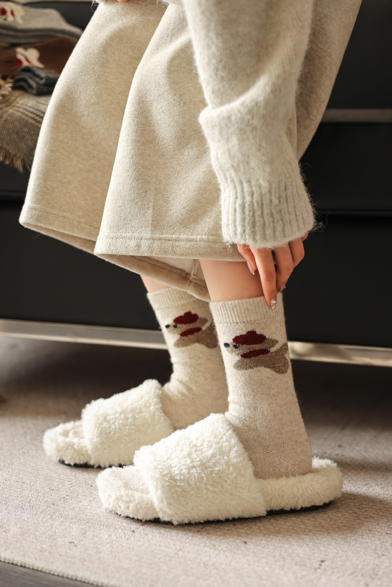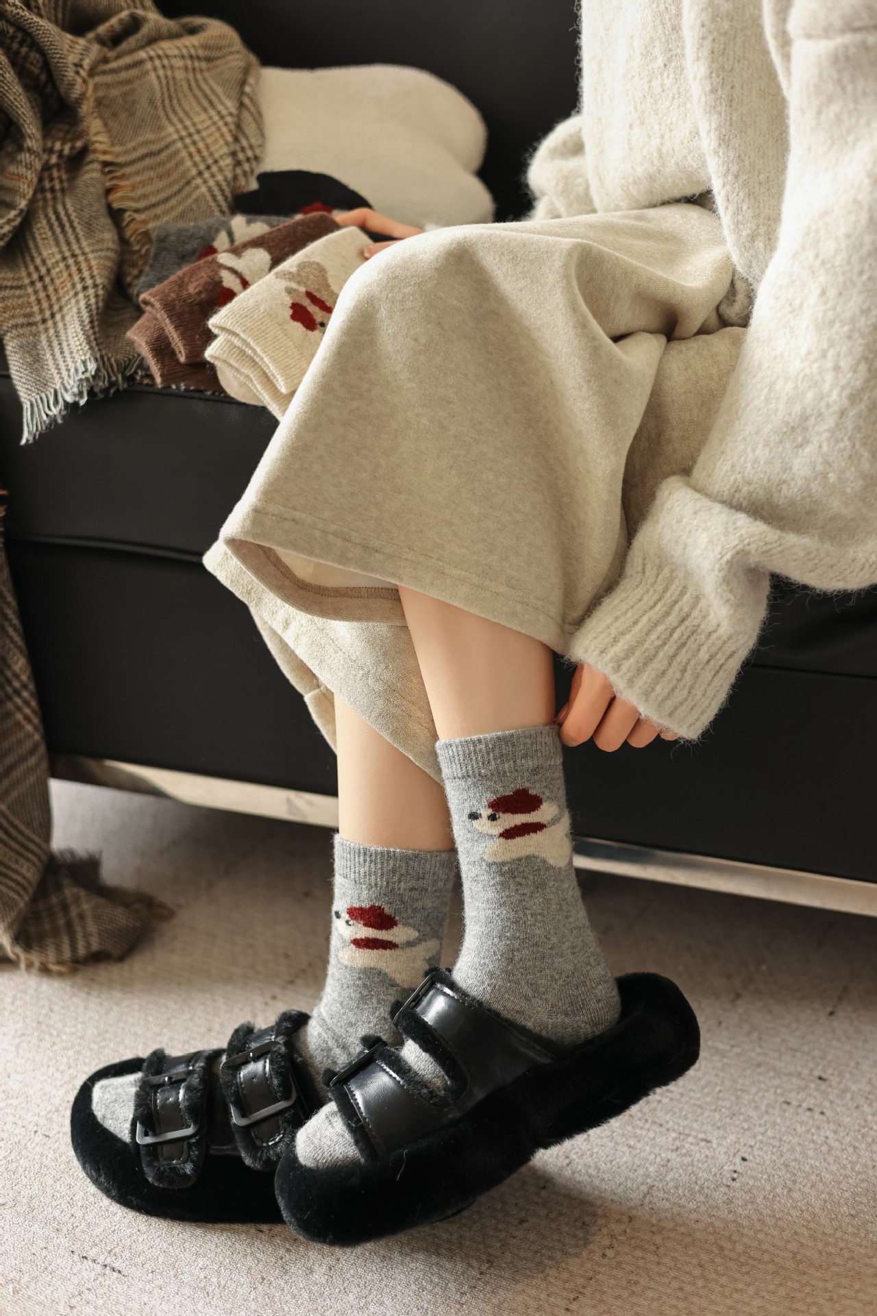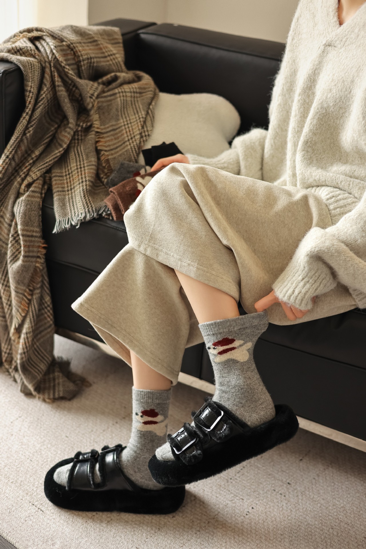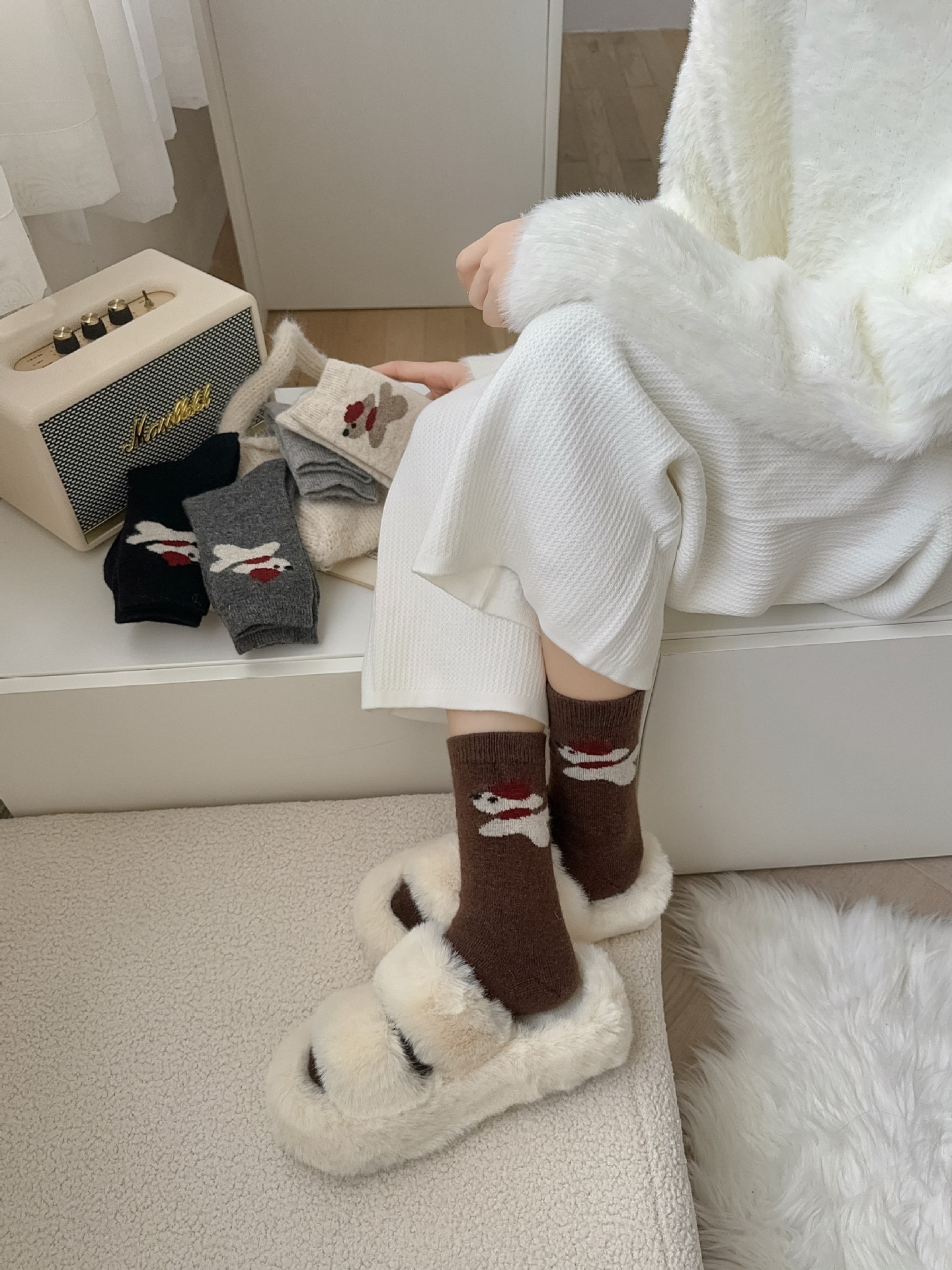 양모 귀여운 목 강아지 양말 여성의 중간 양말 가을과 겨울 두꺼운 캐시미어 따뜻한 겨울 스타킹 스택 양말