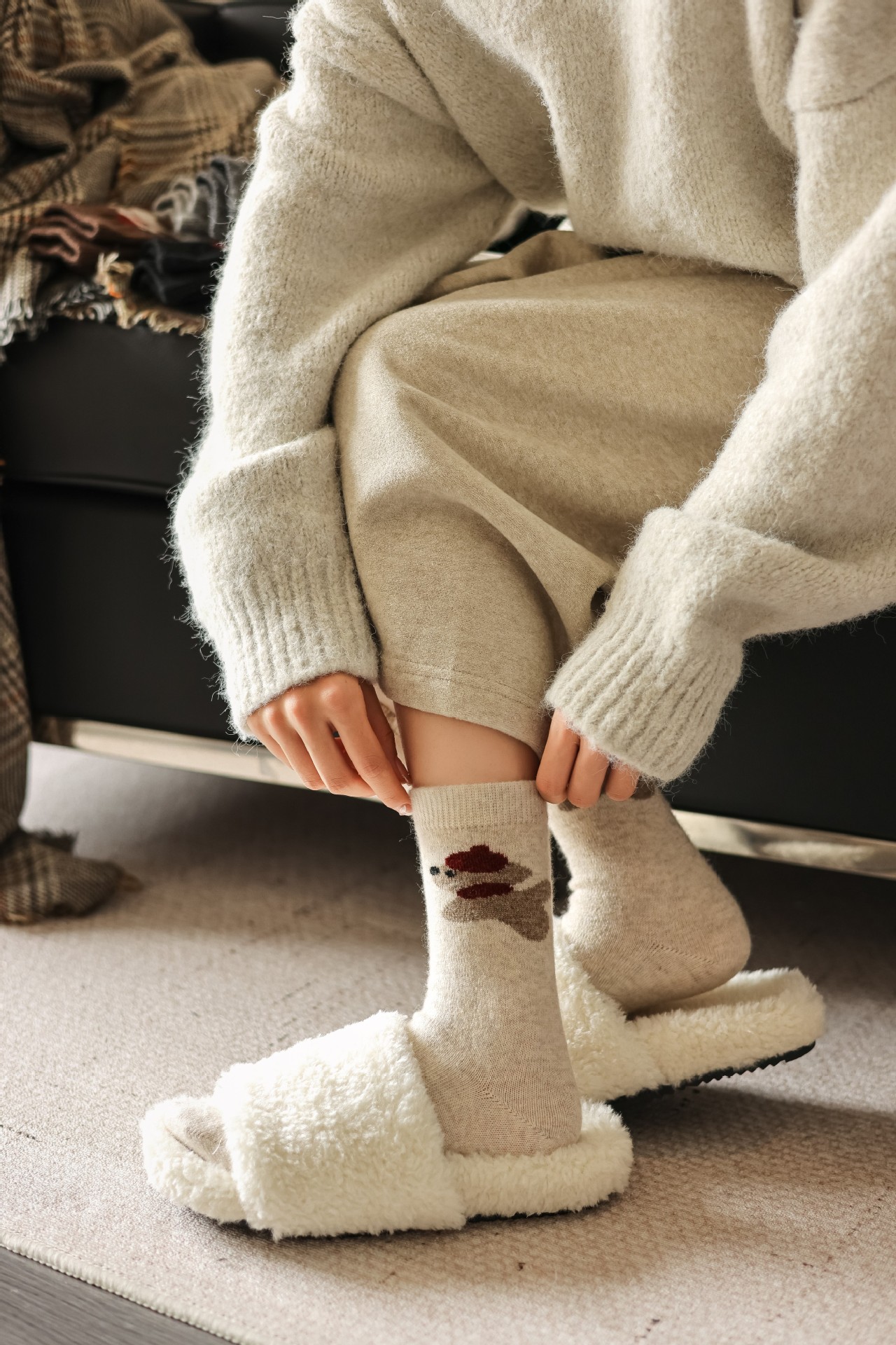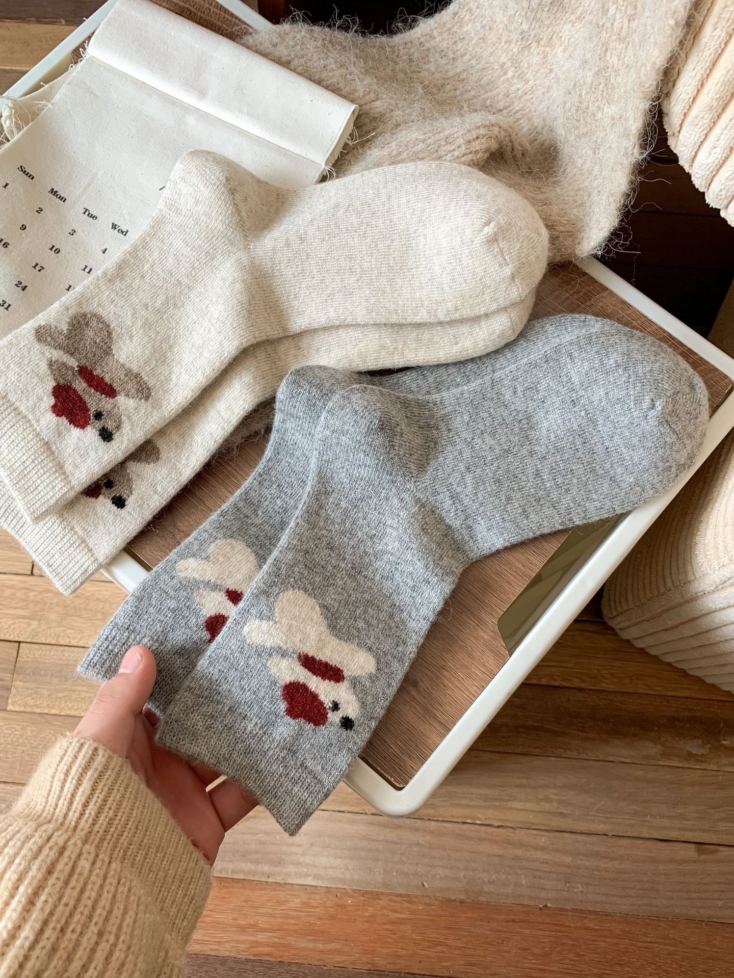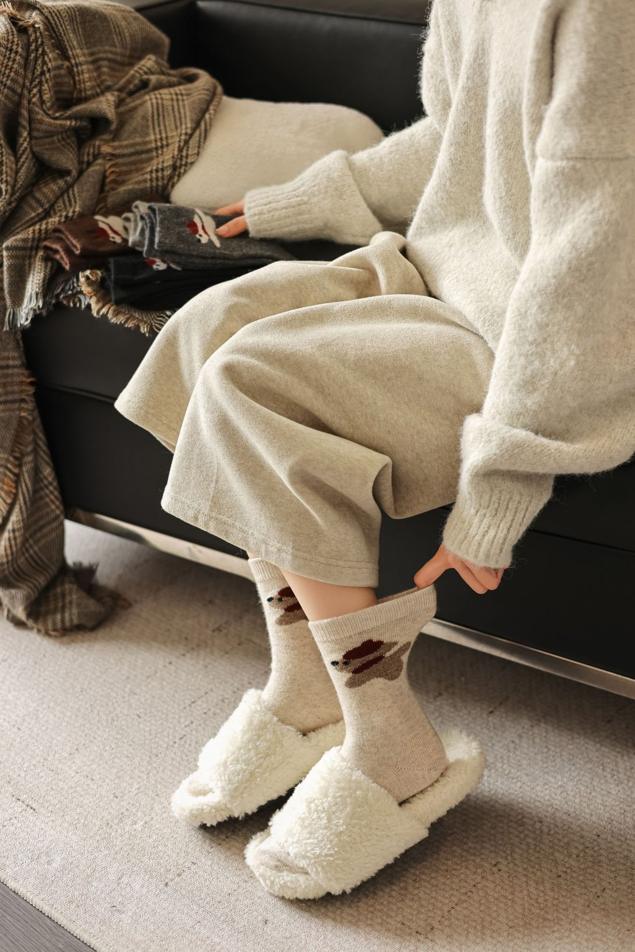양모 귀여운 목 강아지 양말 여성의 중간 양말 가을과 겨울 두꺼운 캐시미어 따뜻한 겨울 스타킹 스택 양말스토어 가기