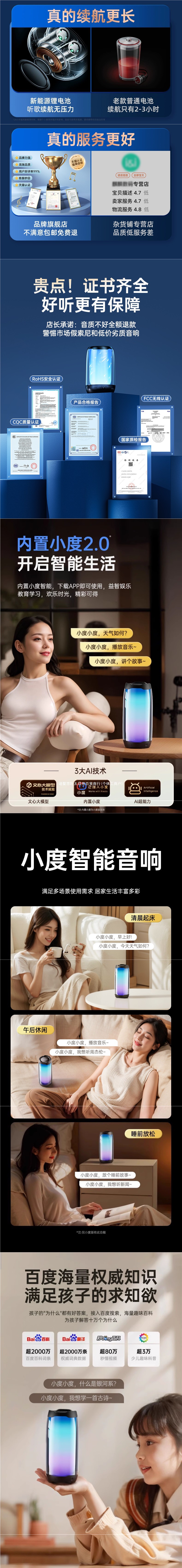• Xiaodu 버전 [Yaoyehei] 지능형 노래 요청★돌비 파노라마 서라운드★슈퍼베이스★매우 긴 배터리 수명과 큰 볼륨