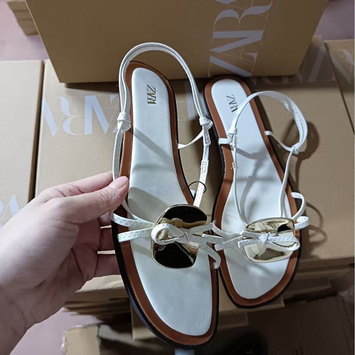 ZA 여성 신발 2024 여름 새로운 여성 신발 금속 버클 장식 플랫 샌들 비치 여성 신발