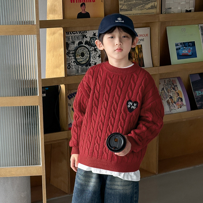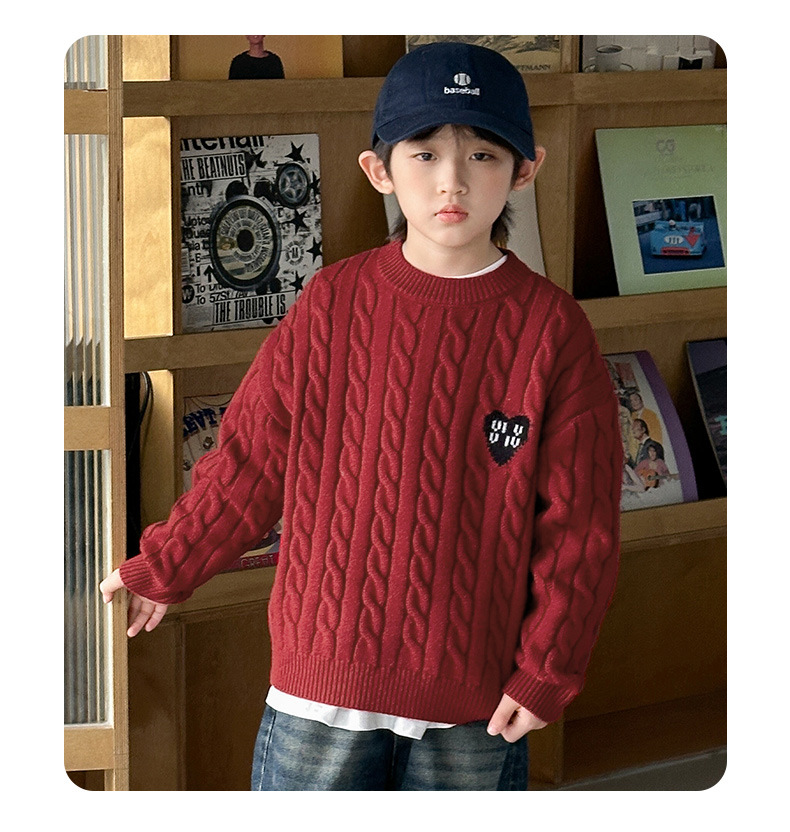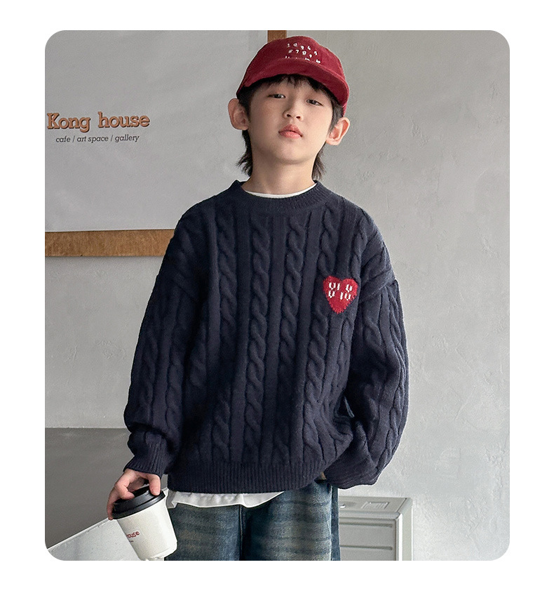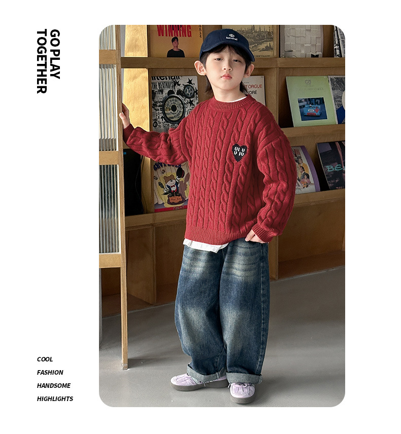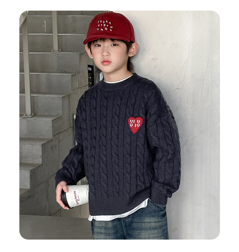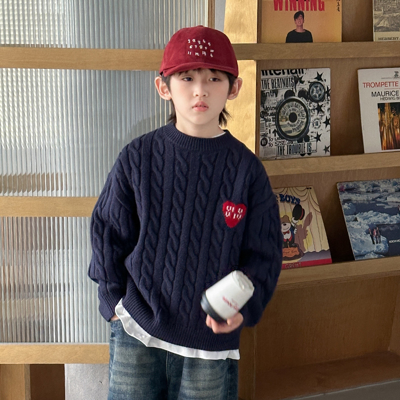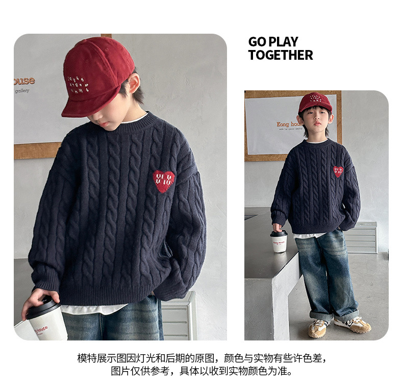 남학생 스웨터 겨울 2024 새로운 서양식 아동복 두꺼운 탑 겨울 착용 중대형 소년 트렌디 한 겨울 스타일스토어 가기
