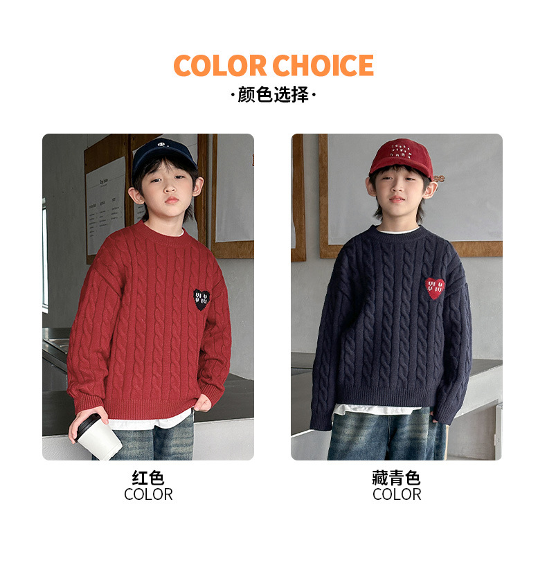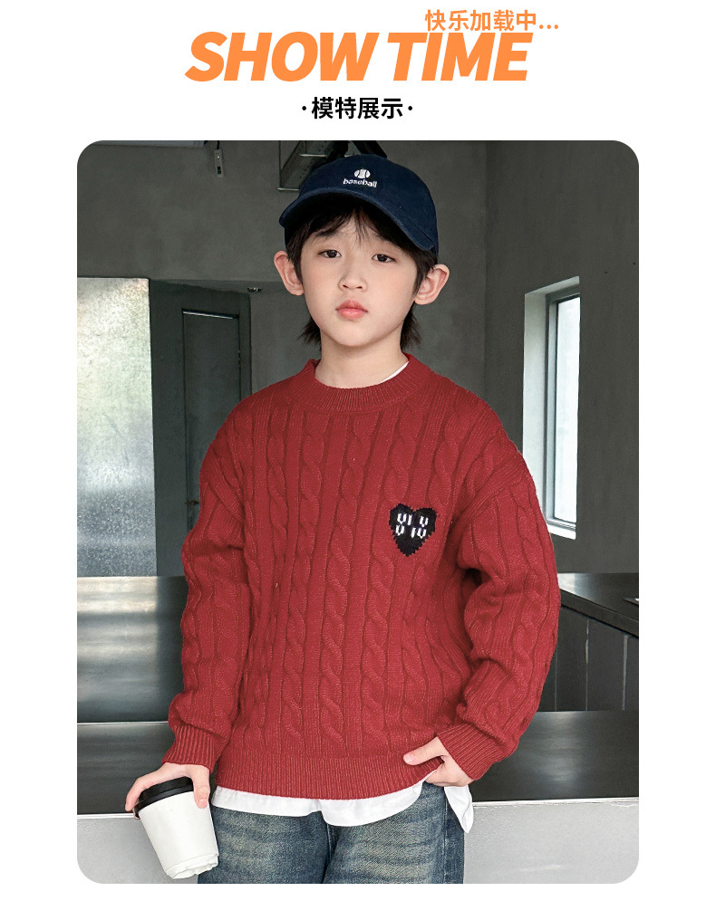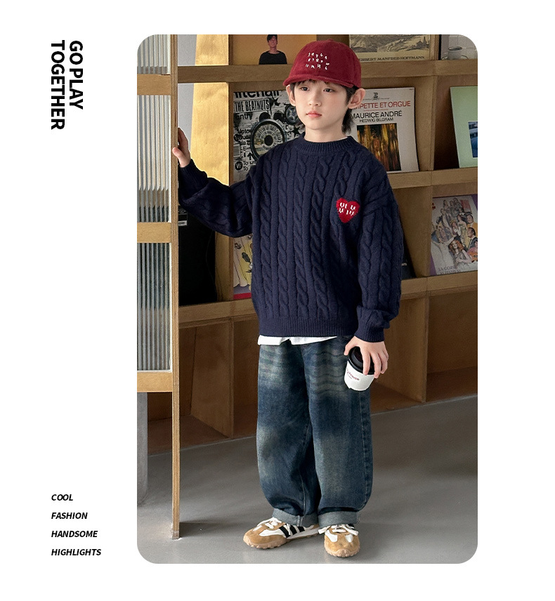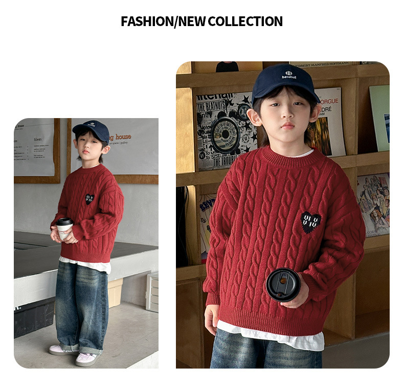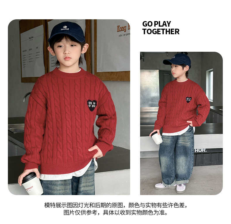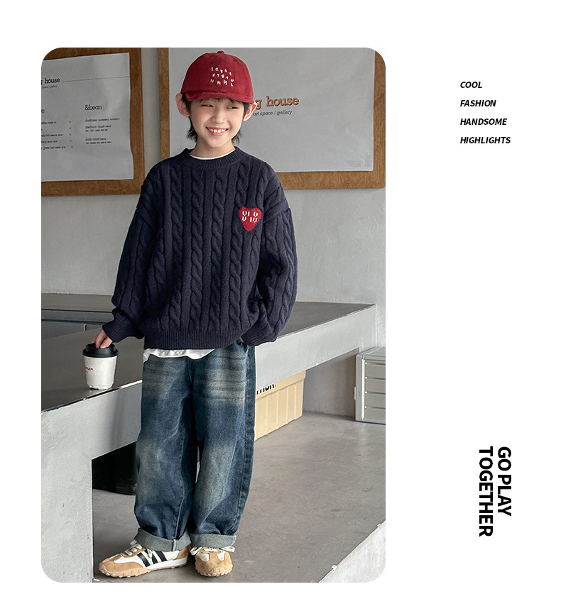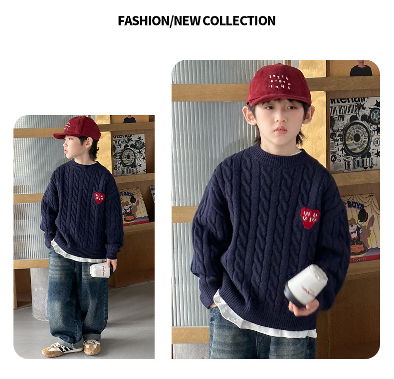 남학생 스웨터 겨울 2024 새로운 서양식 아동복 두꺼운 탑 겨울 착용 중대형 소년 트렌디 한 겨울 스타일스토어 가기