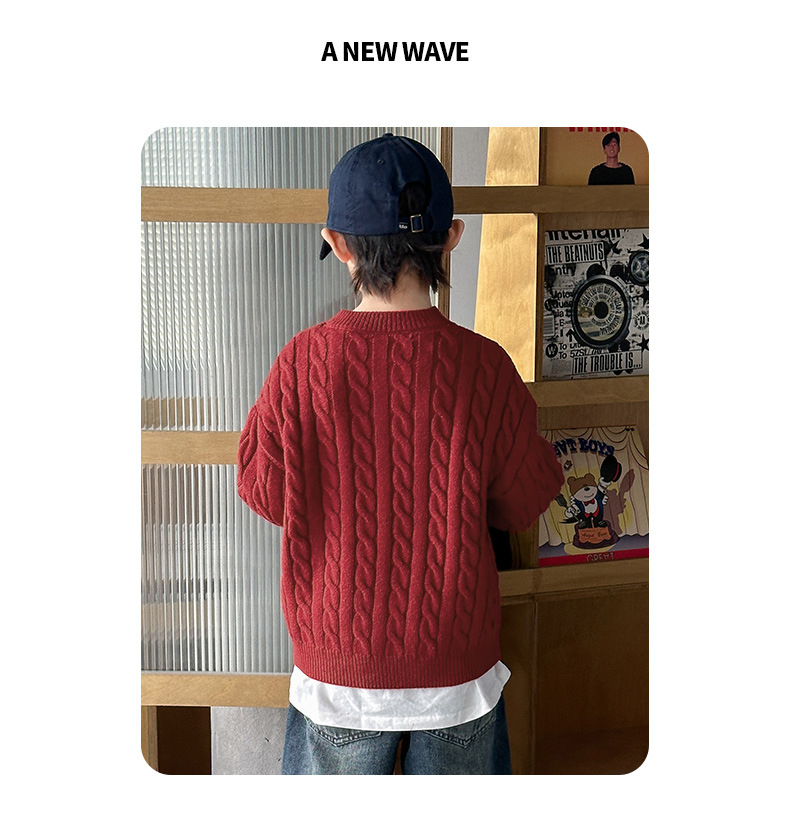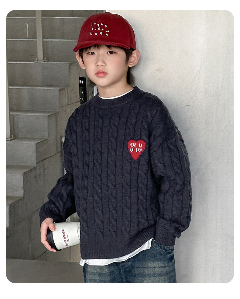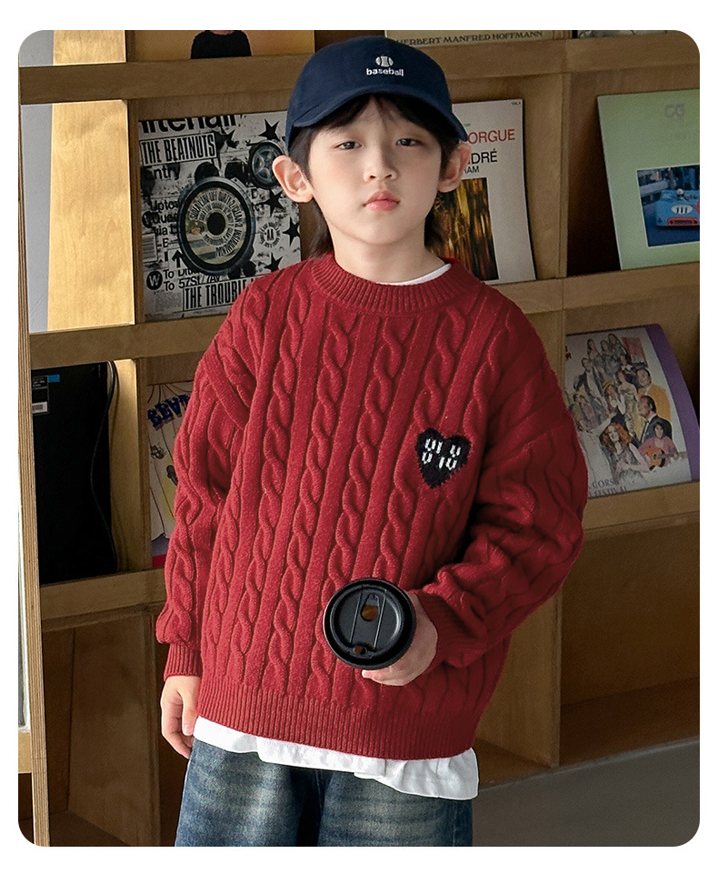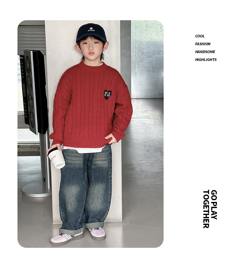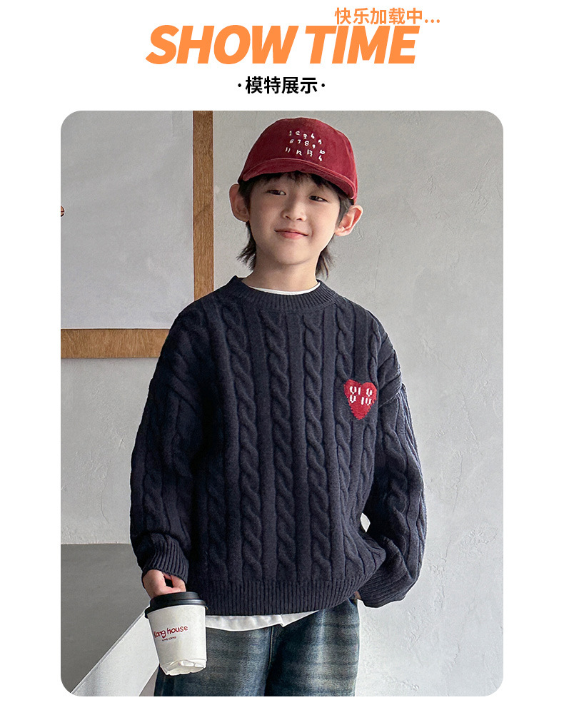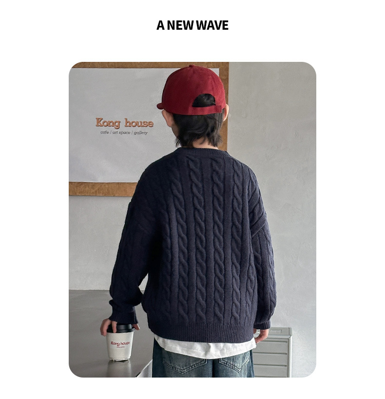 남학생 스웨터 겨울 2024 새로운 서양식 아동복 두꺼운 탑 겨울 착용 중대형 소년 트렌디 한 겨울 스타일스토어 가기