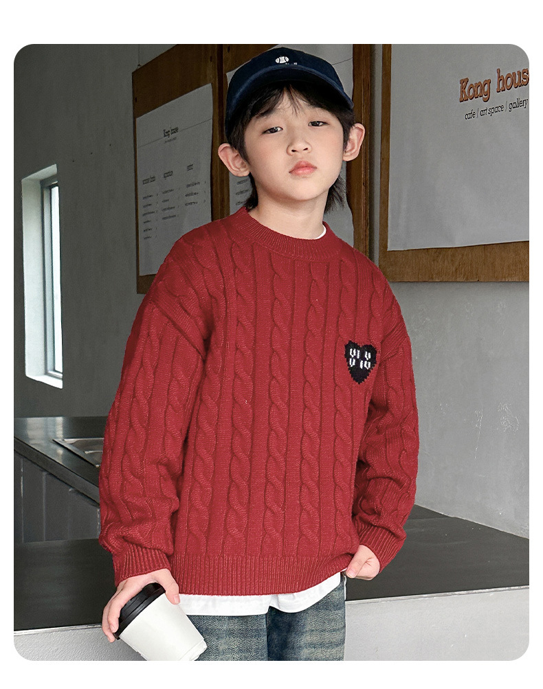 남학생 스웨터 겨울 2024 새로운 서양식 아동복 두꺼운 탑 겨울 착용 중대형 소년 트렌디 한 겨울 스타일