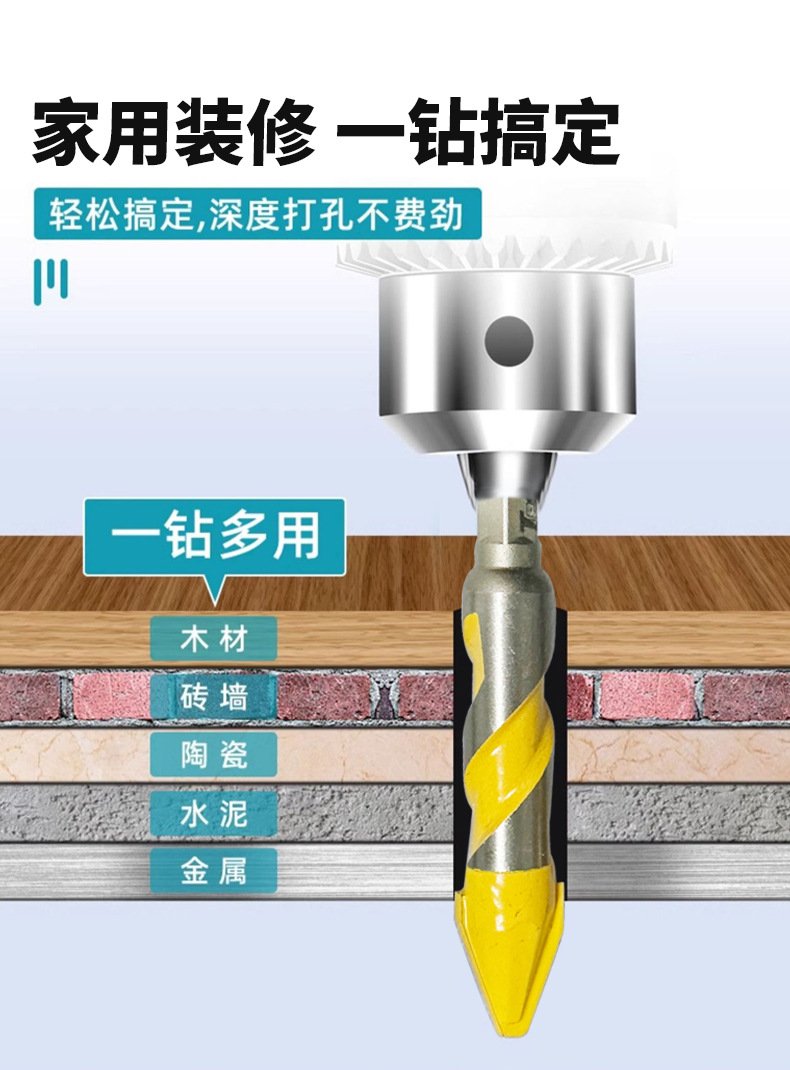 국경 간 스레드 삼각형 드릴 타일 드릴 콘크리트 시멘트 벽돌 벽 드릴링 카바이드 삼각형 핸드 드릴스토어 가기