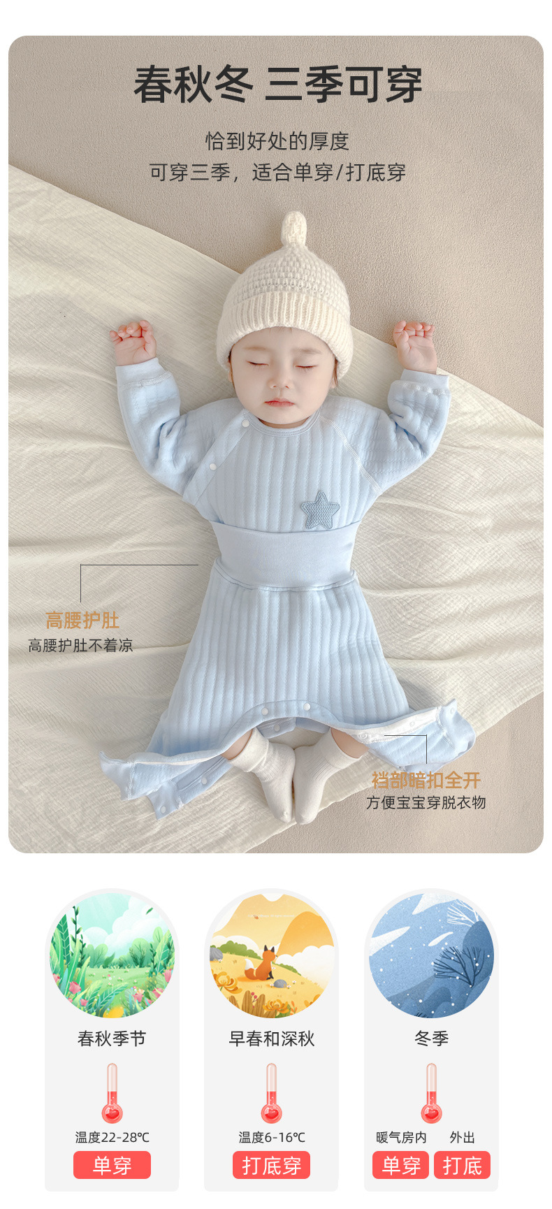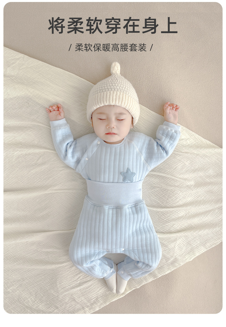 아기 누빔 하이웨이스트 보온 내의 세트 신생아 옷 아기 분리형 옷 가을 겨울 이너웨어 투피스 세트