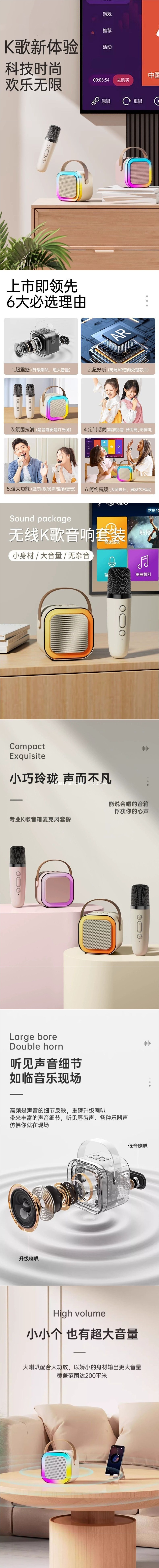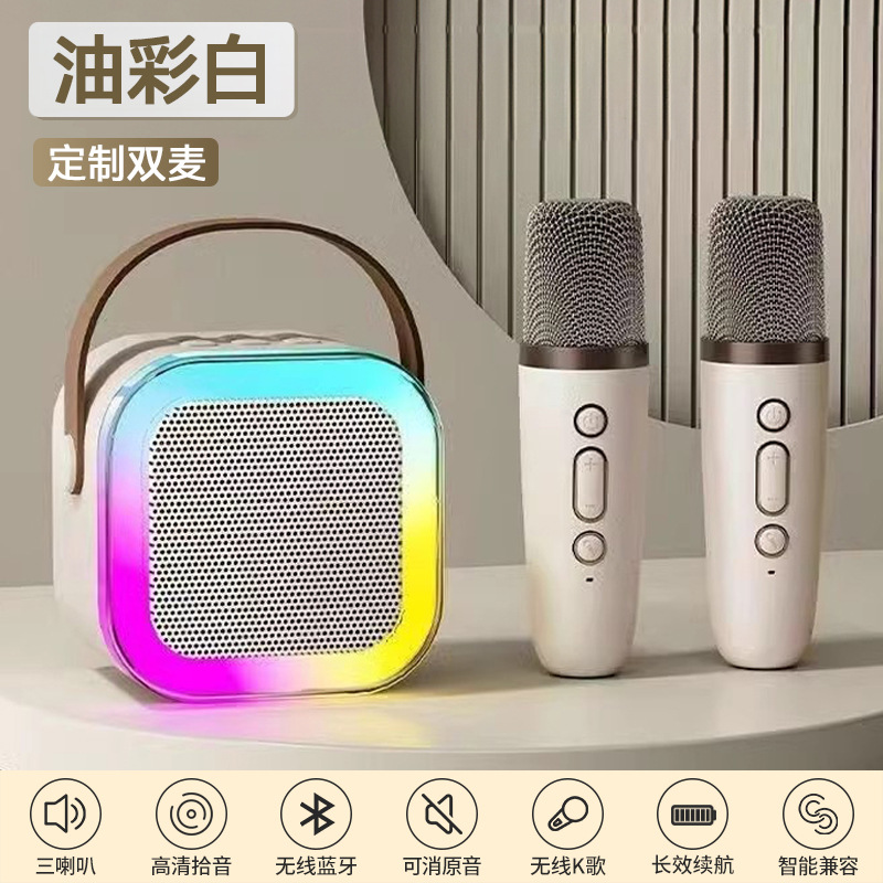 무선 올인원 홈 ktv 세트 새로운 마이크 노래방 블루투스 스피커 어린이 노래 오디오 스마트 사운드 카드스토어 가기
