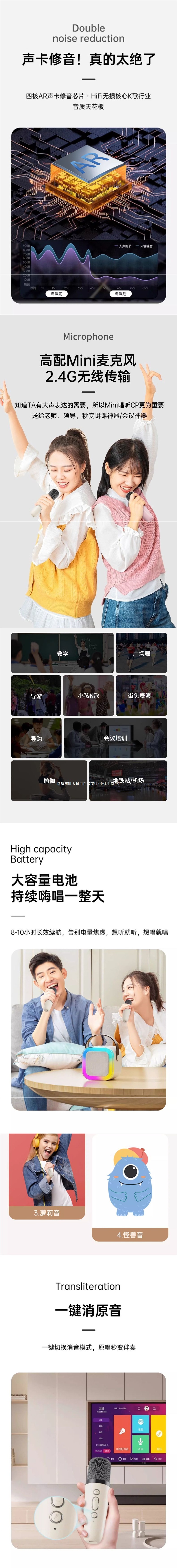 • 싱글 마이크 드림 파우더 [플래그십 에디션] KTV 레벨 음향 효과 + DSP 듀얼 소음 감소 + 스테레오 대용량