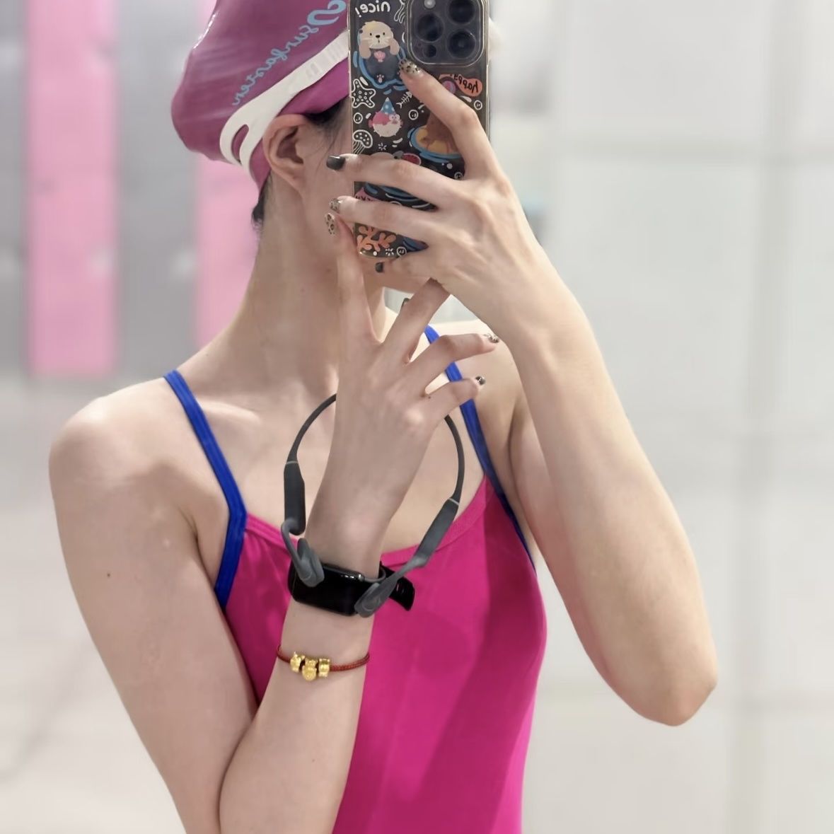 로즈 레드 원피스 레이싱 트라이앵글 수영 세트 여자 백 크로스 더블 레이어, 가슴 패드 스페셜 수영장스토어 가기