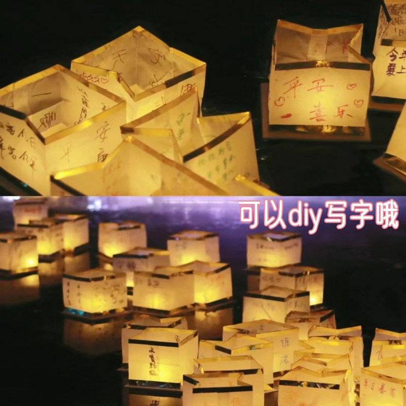 등불 축제 소원 강 램프 LED 다채로운 사각형 물 램프 경치 좋은 장소 물 장식 물 램프 축제 DIY 필기 플로팅 램프스토어 가기