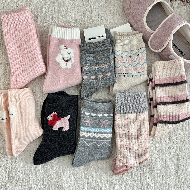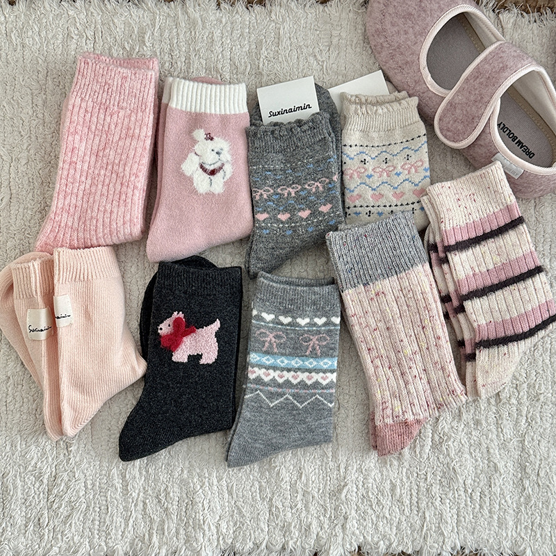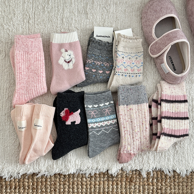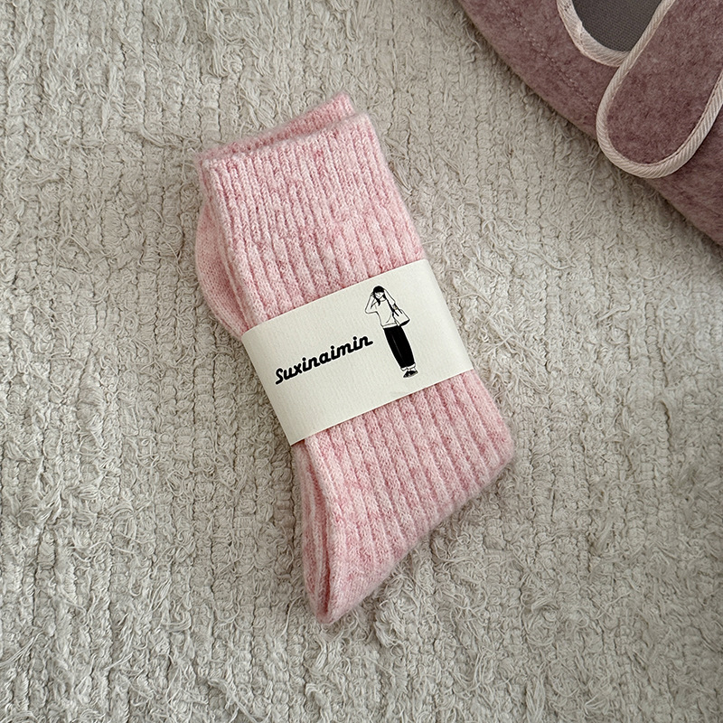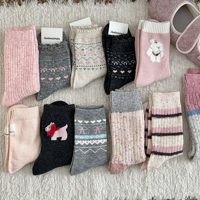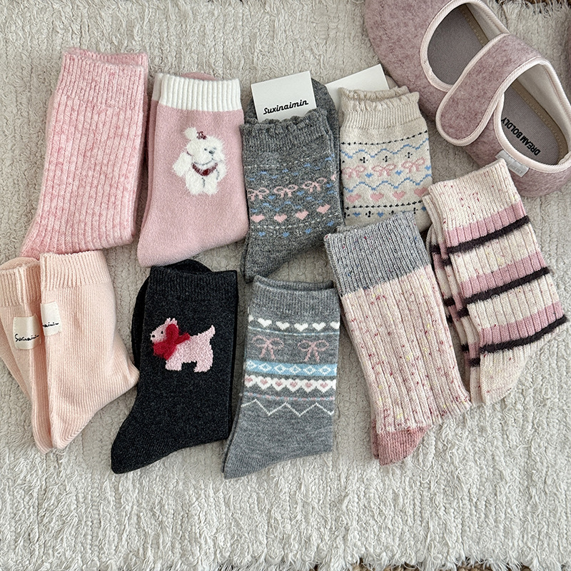 회색 핑크 양말 여성의 중간 길이 양말 가을과 겨울 두꺼운 따뜻한 양모 활 면 양말 겨울 긴 스택 양말스토어 가기