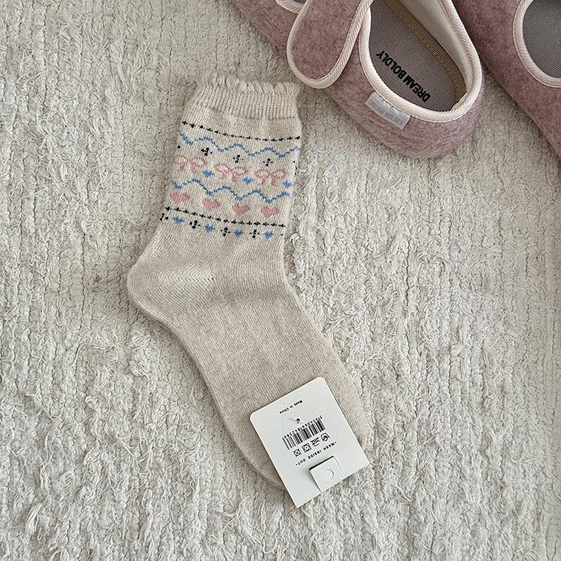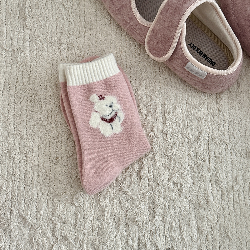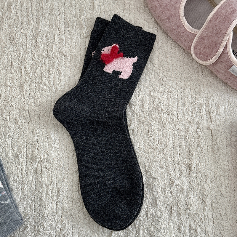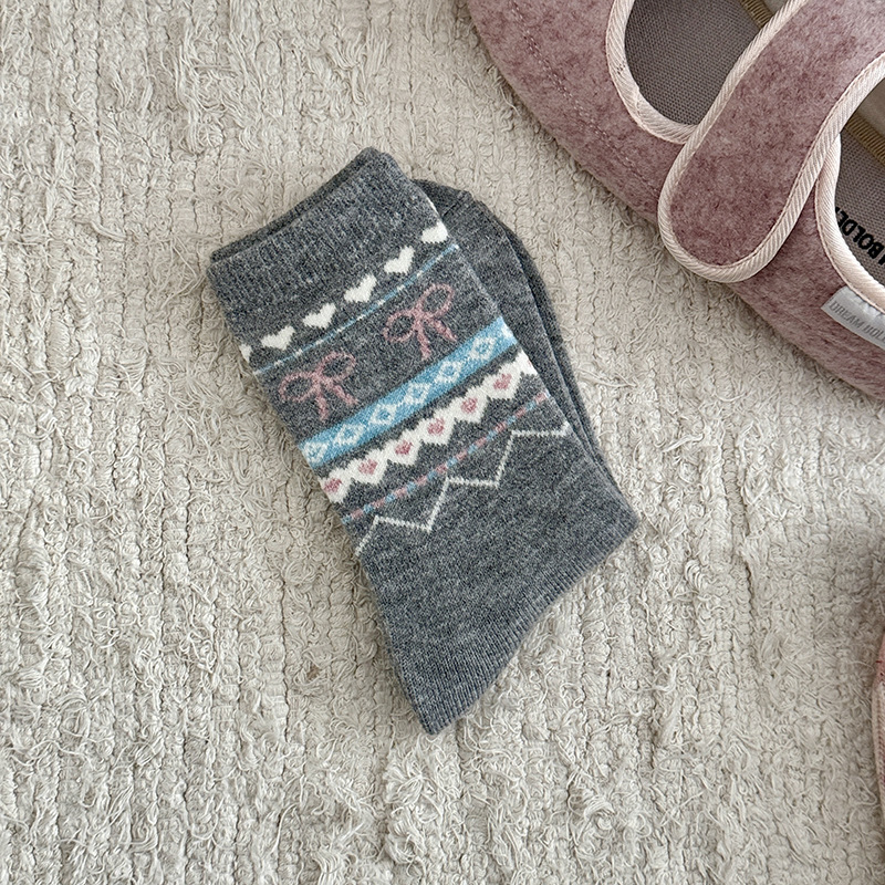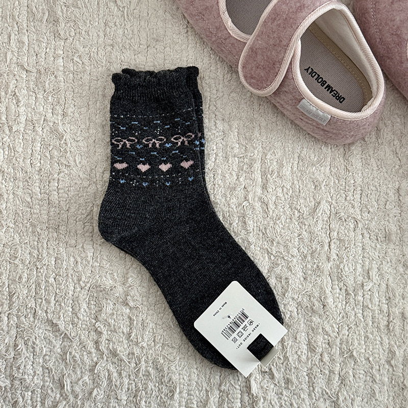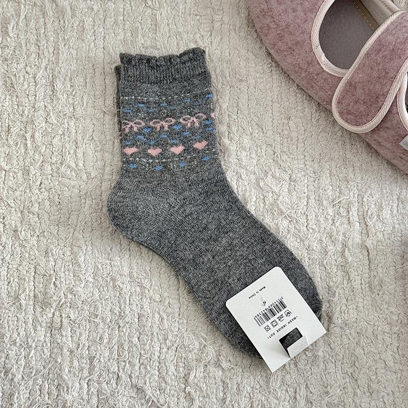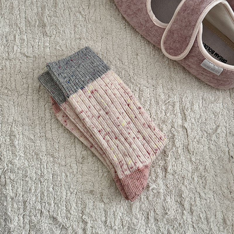 회색 핑크 양말 여성의 중간 길이 양말 가을과 겨울 두꺼운 따뜻한 양모 활 면 양말 겨울 긴 스택 양말스토어 가기