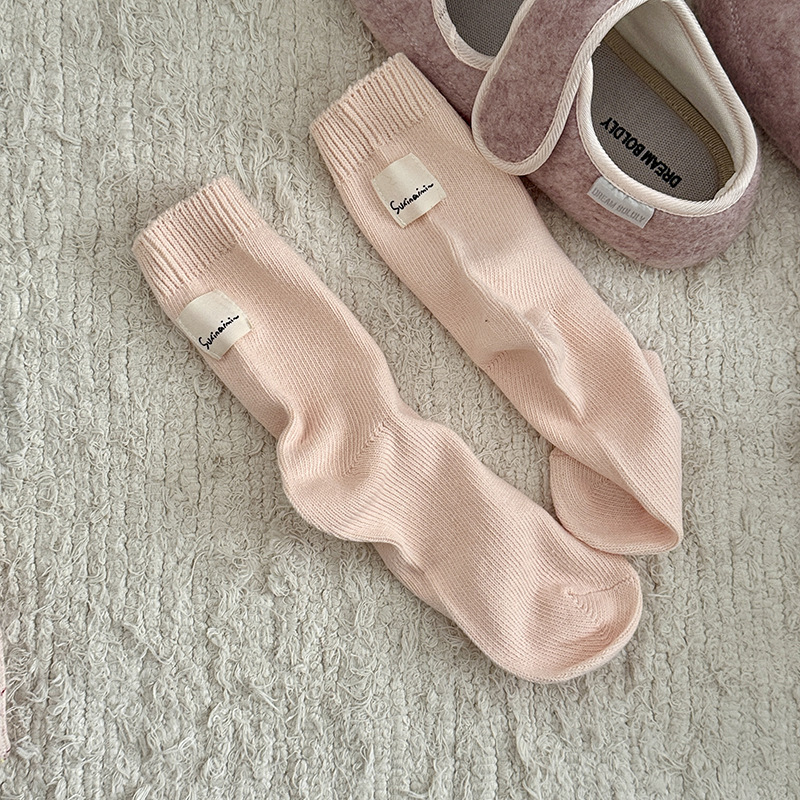 회색 핑크 양말 여성의 중간 길이 양말 가을과 겨울 두꺼운 따뜻한 양모 활 면 양말 겨울 긴 스택 양말
