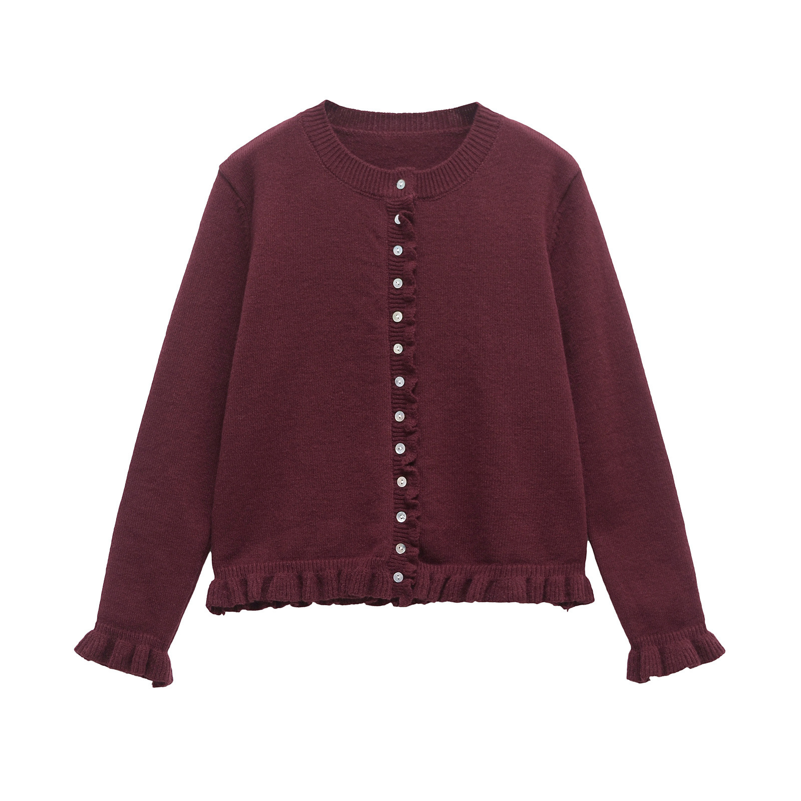국경 도매 2025 유럽과 미국의 새로운 여성 패션 캐주얼 크루 넥 적층 장식 스웨터 코트 A22582스토어 가기