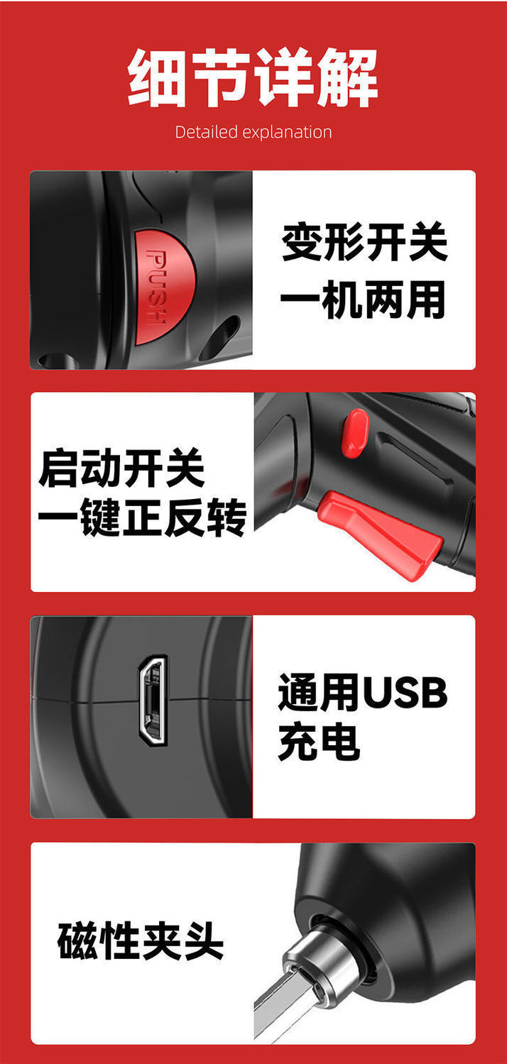 전기 스크루 드라이버 세트 드라이버 헤드 가정용 다기능 충전식 소형 핸드 드릴 전진 및 후진 전기 스크루 드라이버스토어 가기