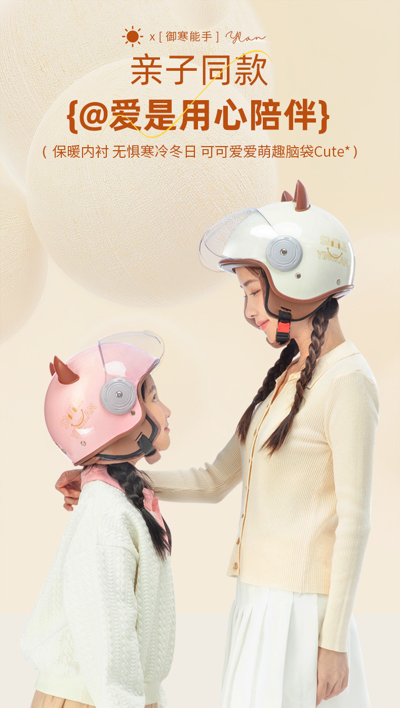 영카이 어린이 헬멧 부모-자녀 전기 자전거 소녀용 3C 인증 귀여운 겨울 보온 오토바이 안전모 소년용스토어 가기