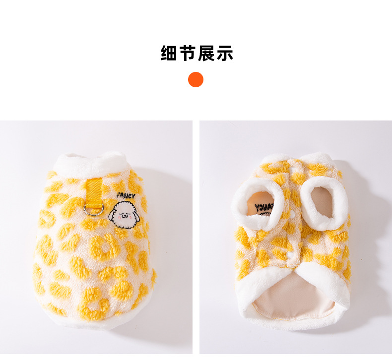 가을과 겨울 개 표범 만화 양고기 두 다리 개 벨벳 옷 작은 개 테디 팬더 고양이 애완 동물 옷스토어 가기