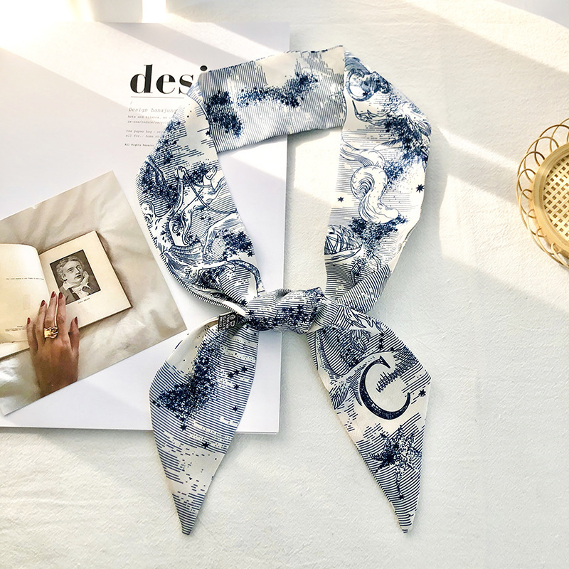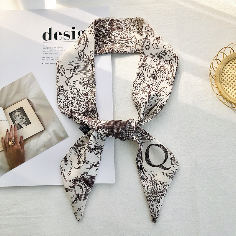 2024 새로운 편지 실크 스카프 나비 Ligature 헤어 타이 백 리본 하이 엔드 롱 리본 올 매치 우아한 스카프