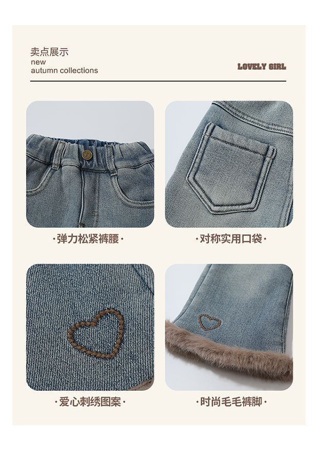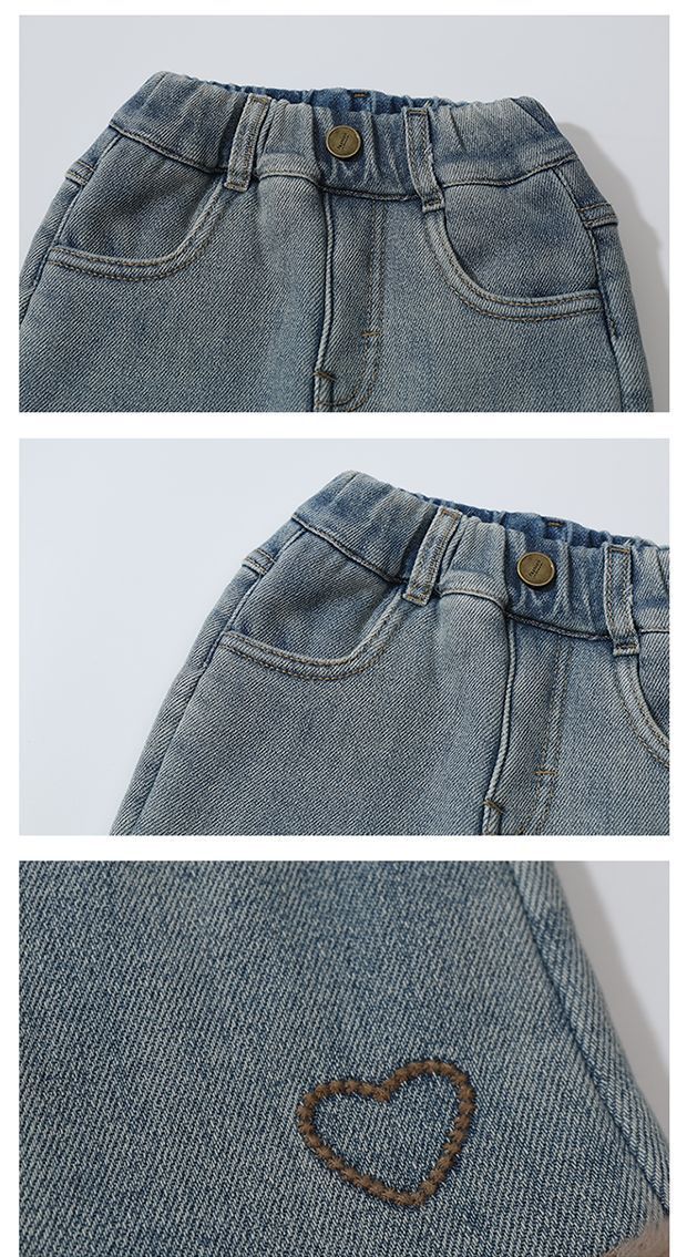 아동복 여아용 플리스 데님 나팔바지 아동 겨울 바지 여아용 한국 스타일 긴바지 두꺼운 보온성스토어 가기