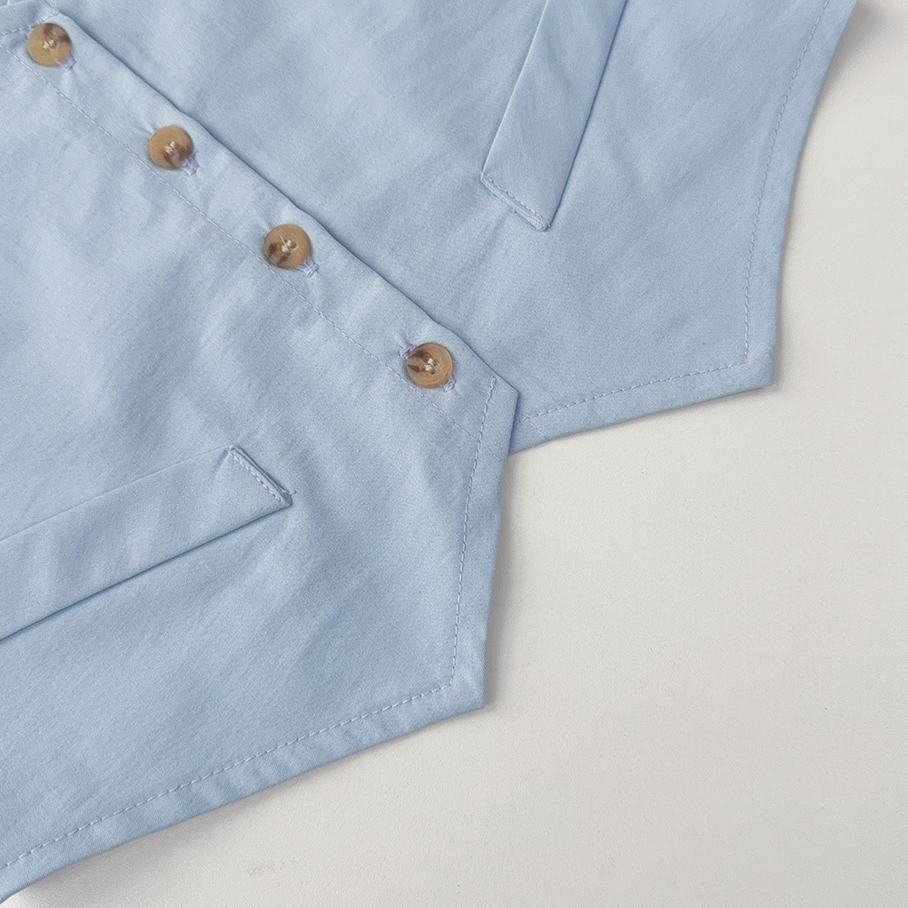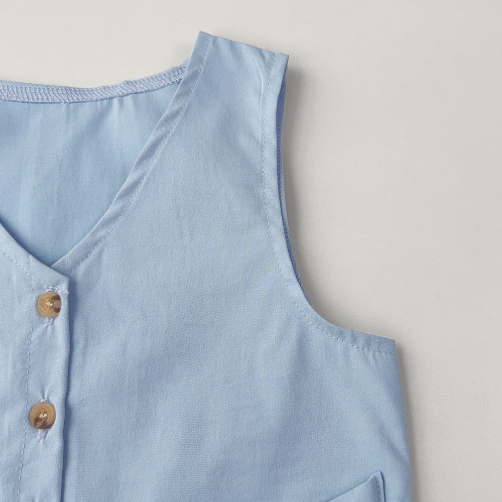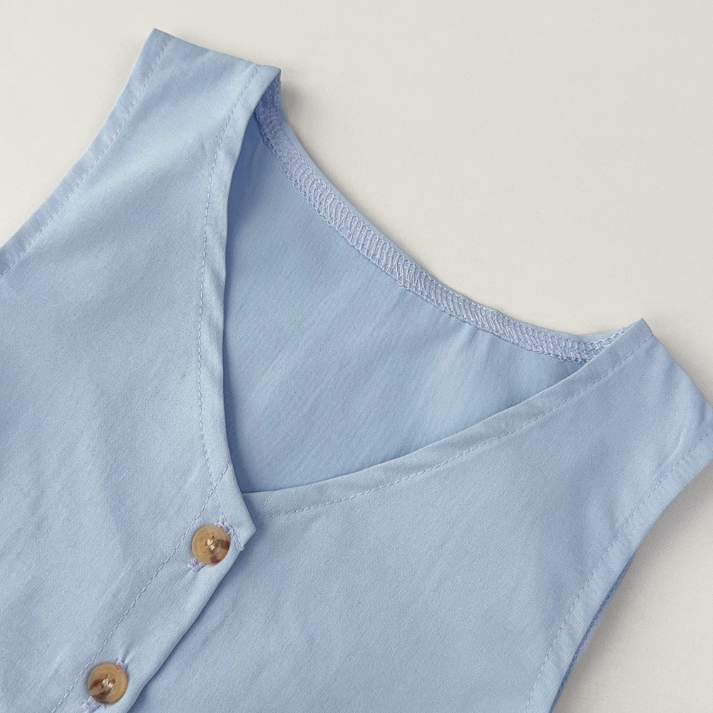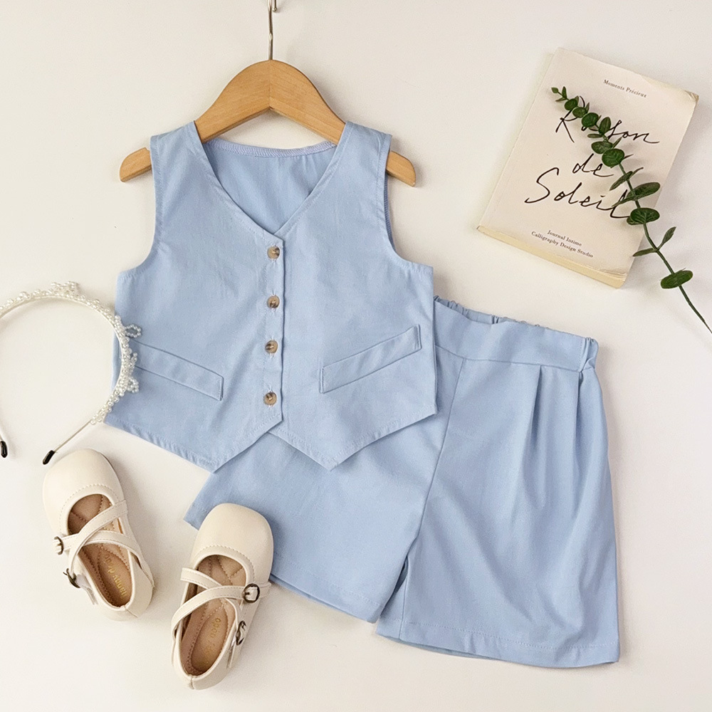 국경 새 아동복 블루 민소매 탑 반바지 투피스 세트 여름 귀여운 서양식 새로운 소녀 캐주얼