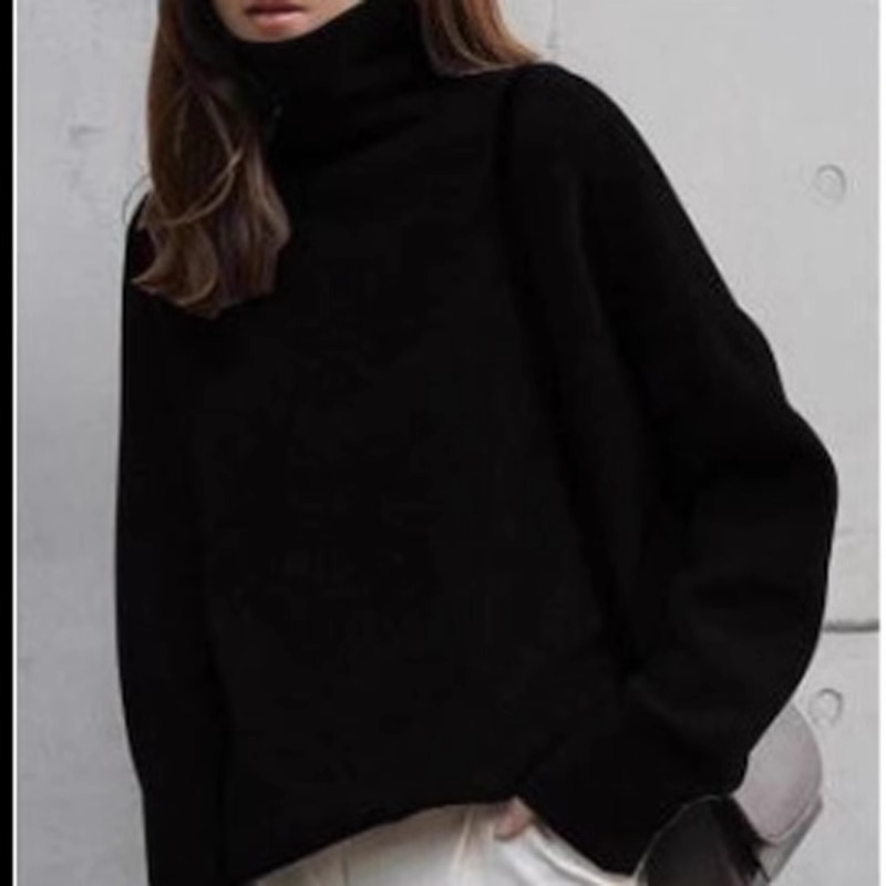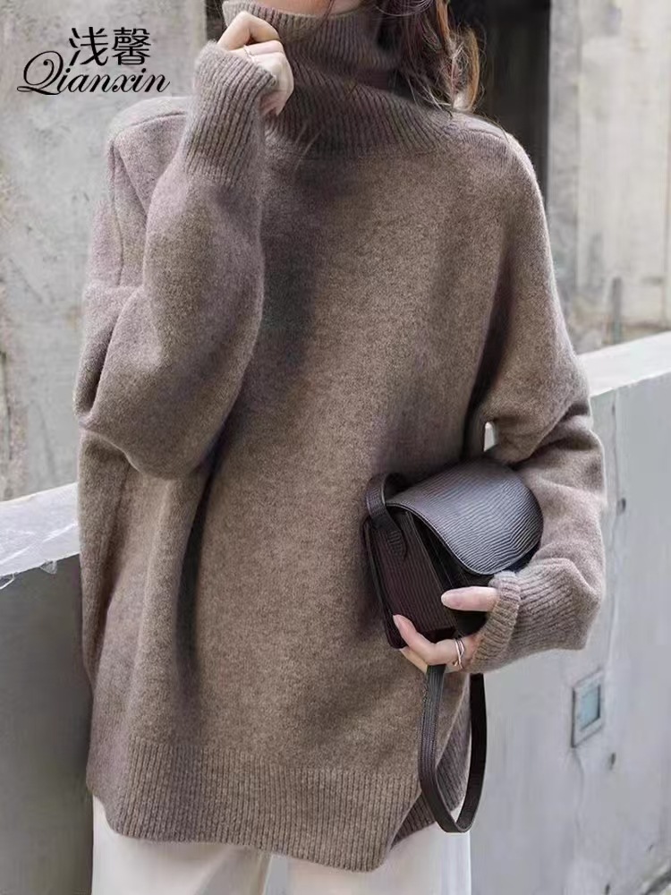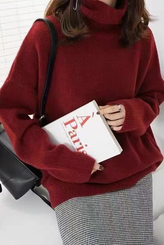 유럽 국경 겨울 새로운 높은 칼라 느슨한 올 매치 니트 풀오버 블루 게으른 스타일베이스 셔츠스토어 가기