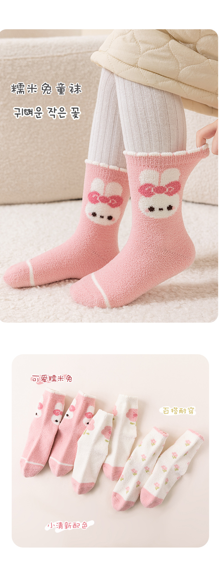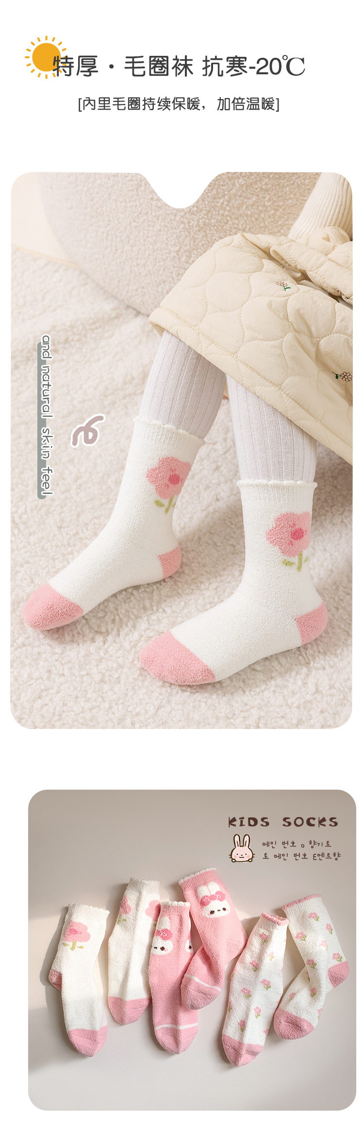 어린이 양말 겨울 기모 두꺼운 따뜻한 두꺼운 양말 미끄럼 방지 소녀 아기 작은 꽃 토끼스토어 가기