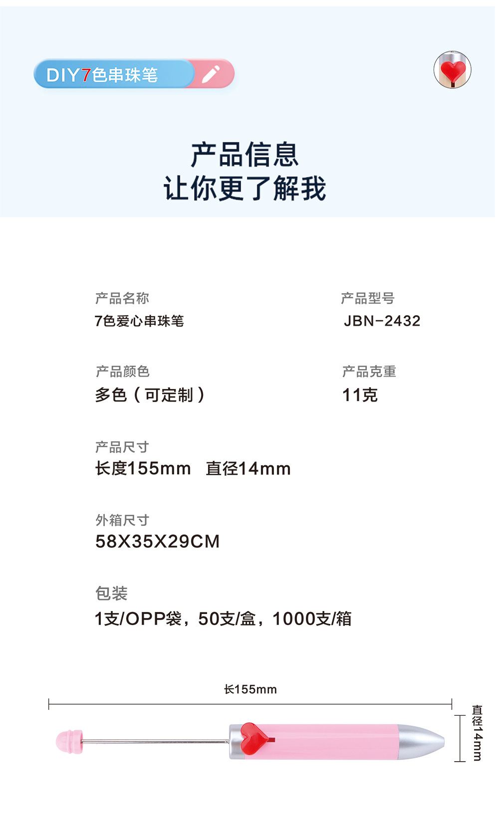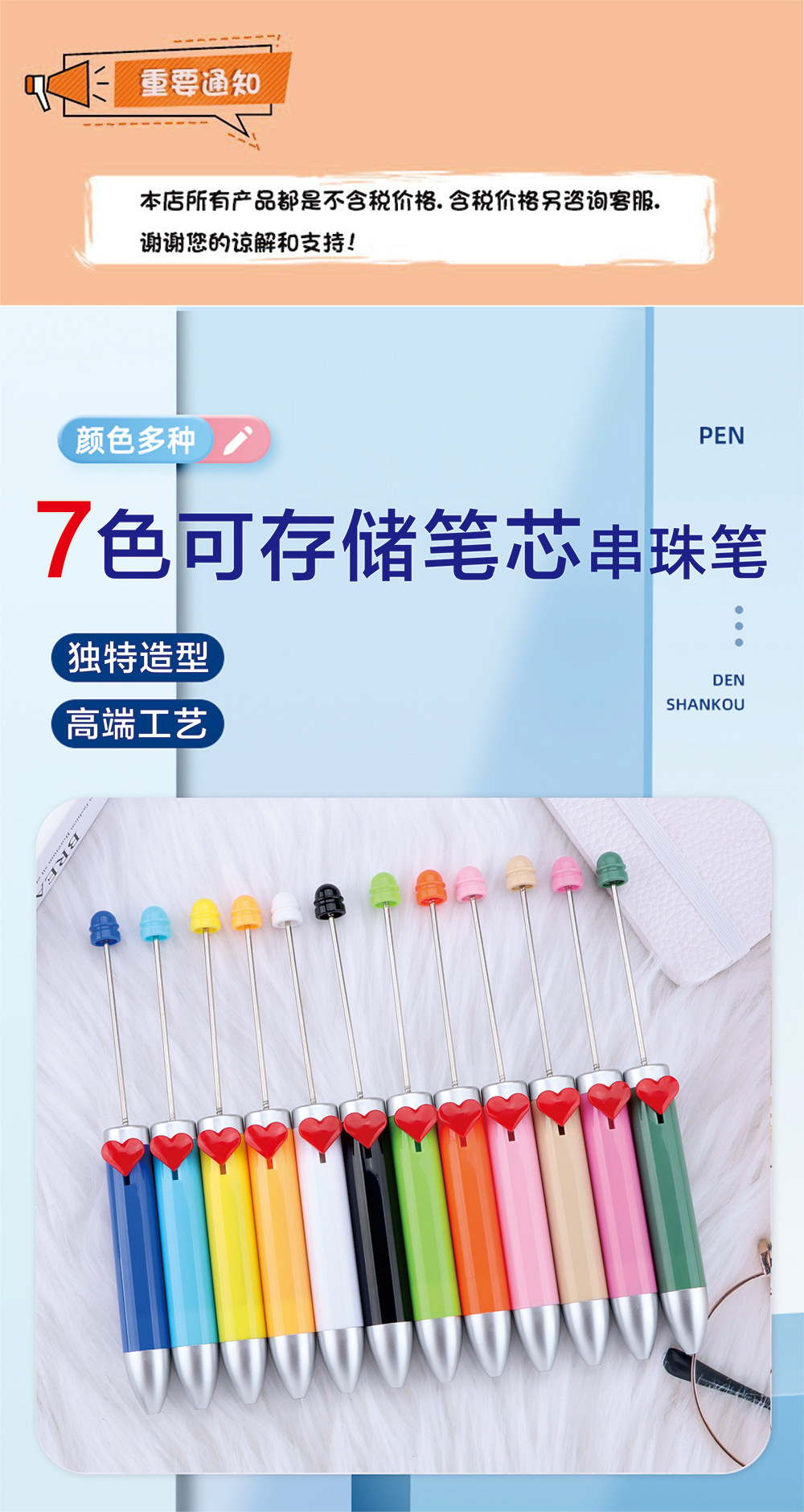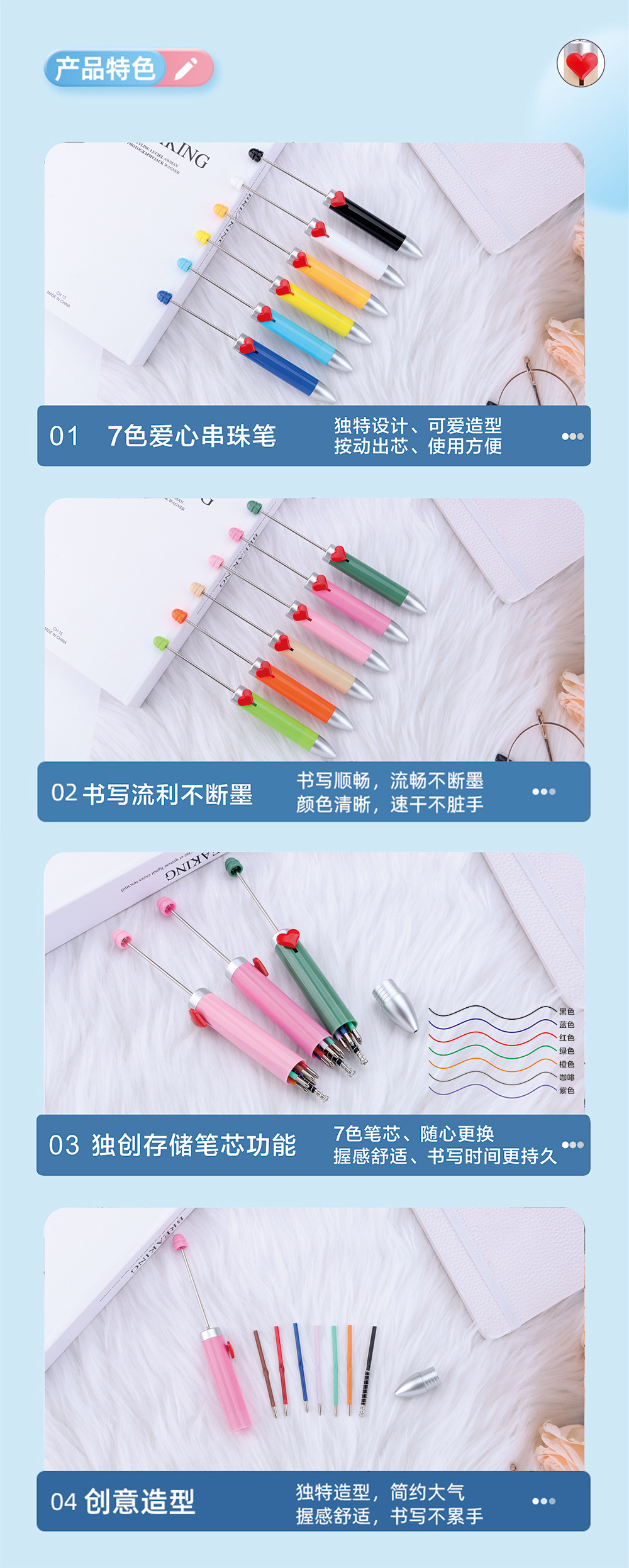 DIY 사랑 7 색 구슬 펜 간단한 멀티 컬러 쓰기 귀여운 펜은 코어 7 색 볼펜 재고 도매로 변경할 수 있습니다