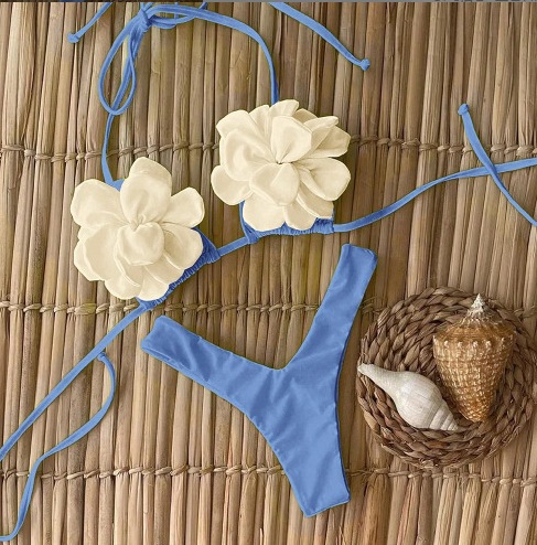 3 점 입체 3D 꽃 낮은 허리 비키니 유럽과 미국의 섹시한 분할 수영복 여성의 2024 새로운 수출 AliExpress스토어 가기