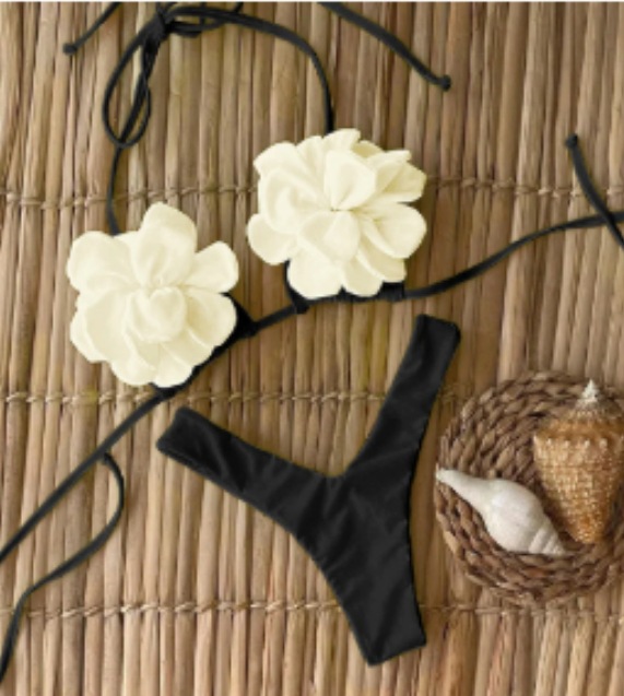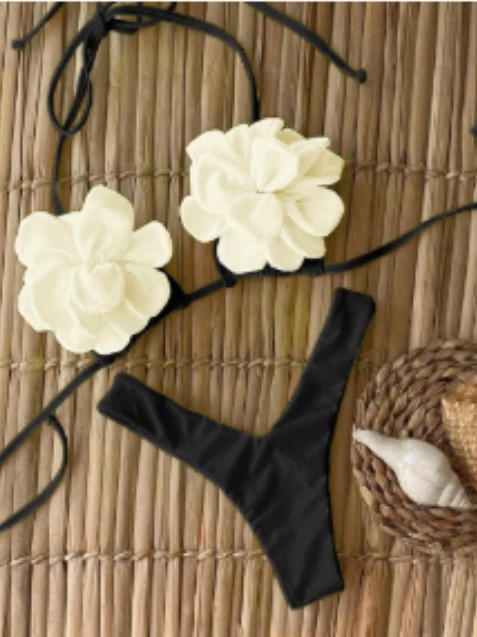 3 점 입체 3D 꽃 낮은 허리 비키니 유럽과 미국의 섹시한 분할 수영복 여성의 2024 새로운 수출 AliExpress
