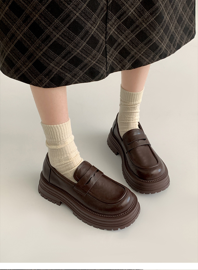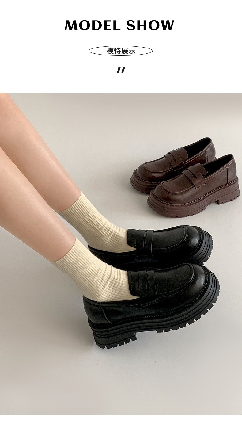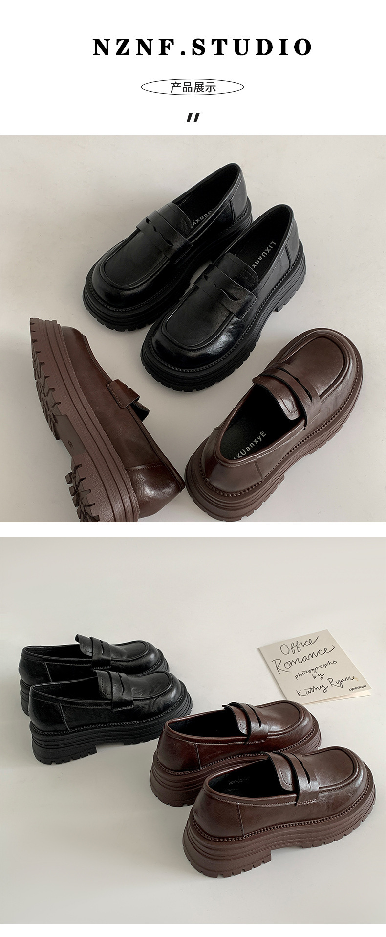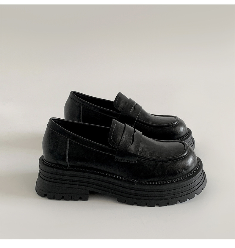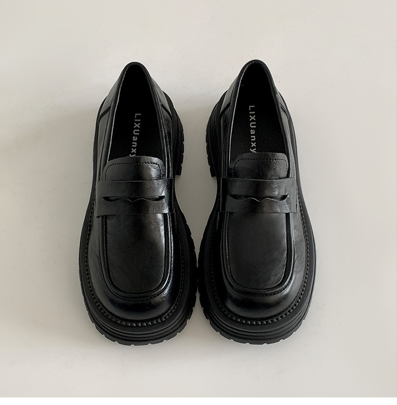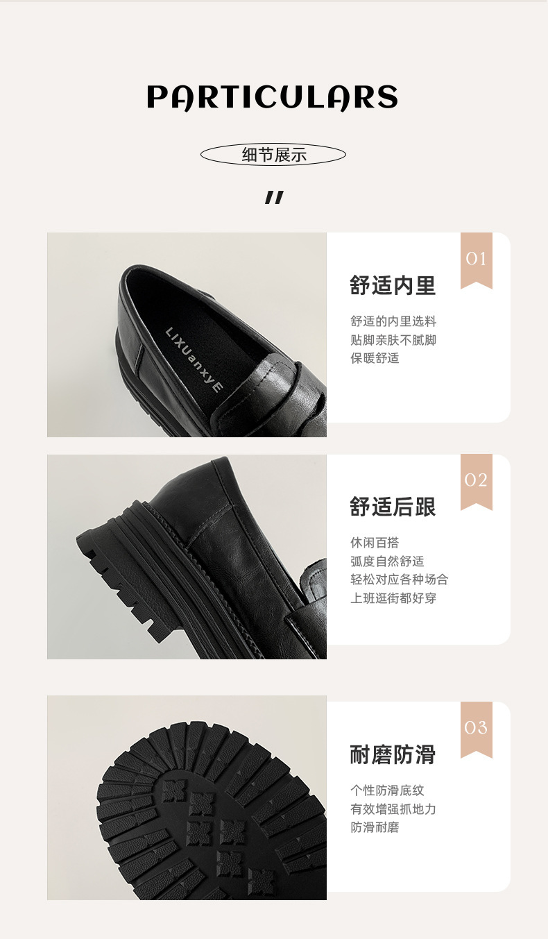 패션 통근 영국 스타일 두꺼운 바닥 작은 가죽 신발 여성의 2024 새로운 가을과 겨울 올 매치 원피스 슬립 온 로퍼스토어 가기