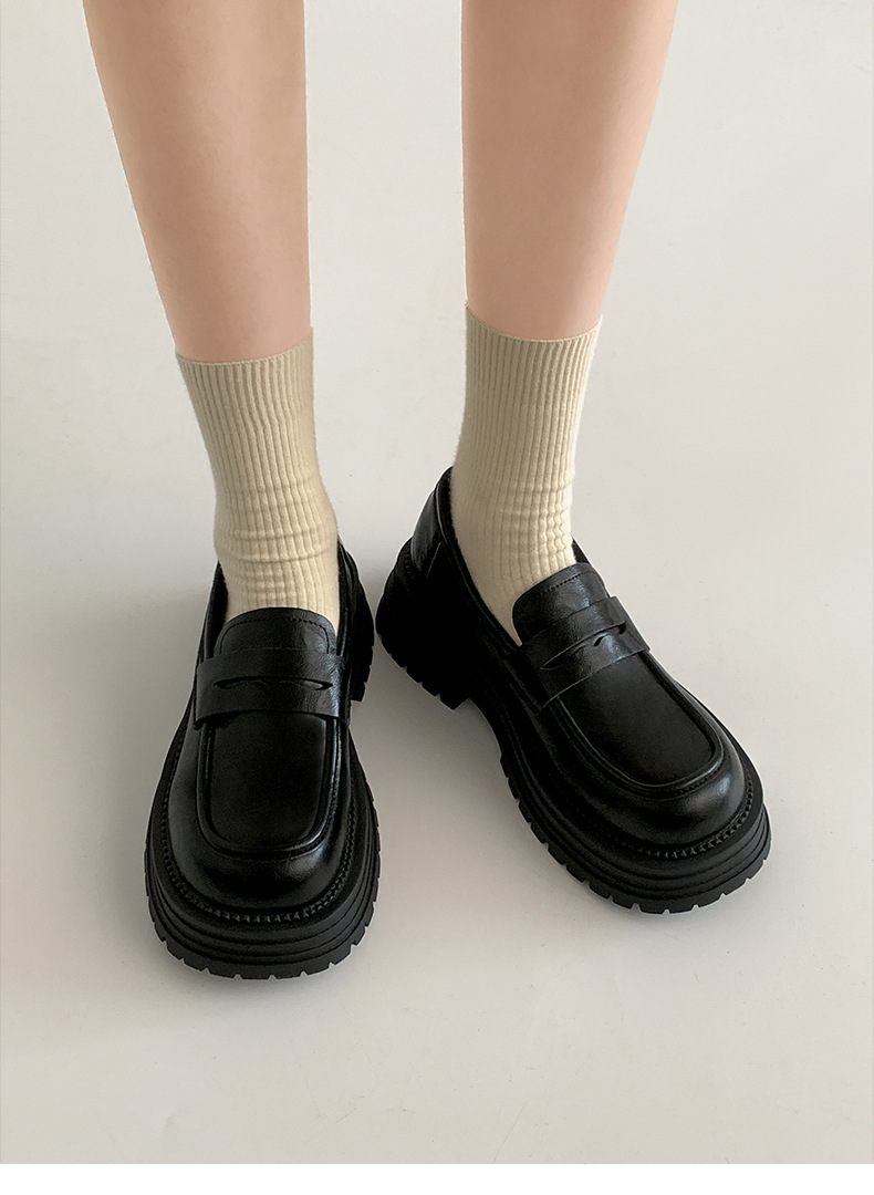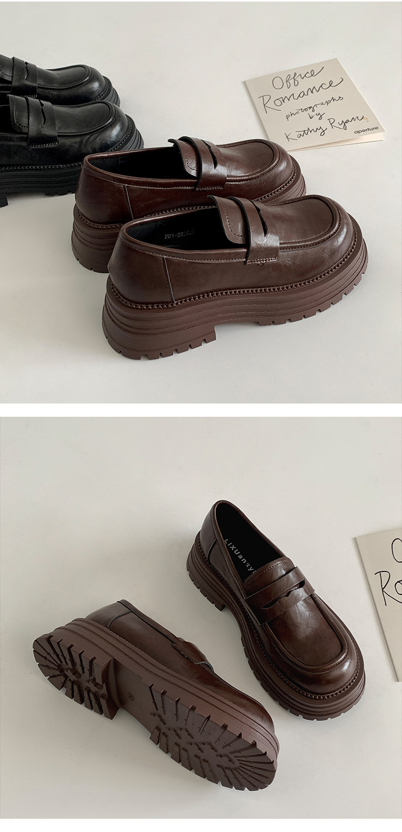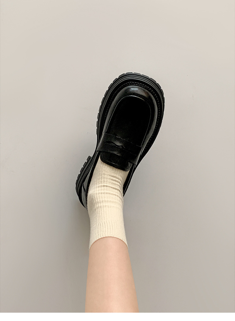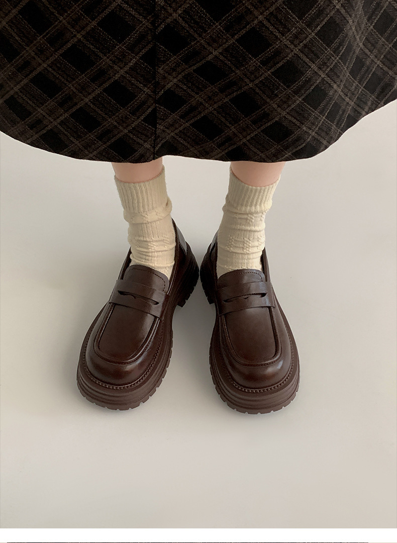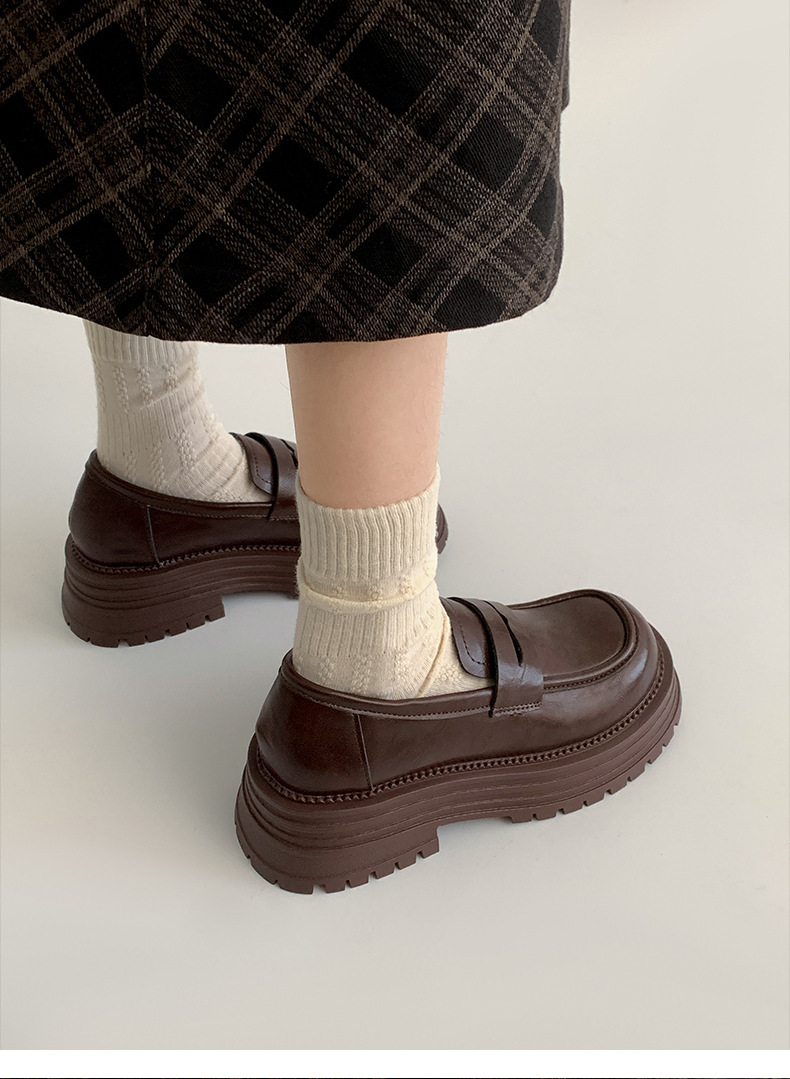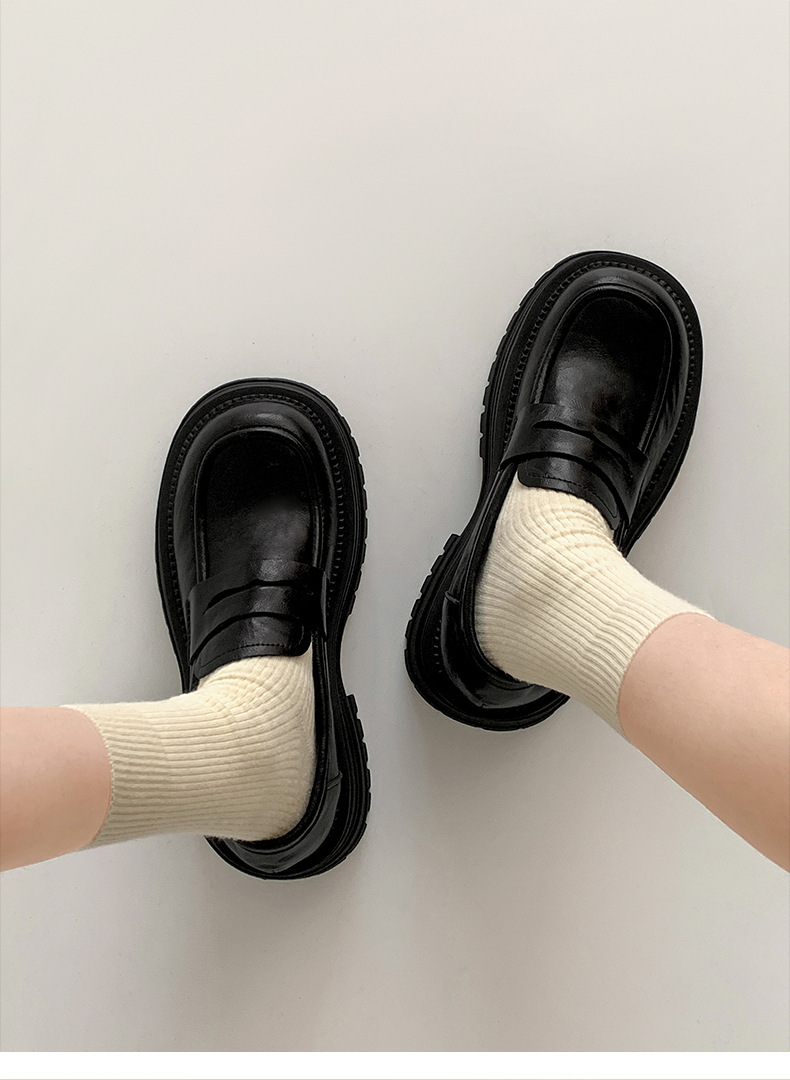 패션 통근 영국 스타일 두꺼운 바닥 작은 가죽 신발 여성의 2024 새로운 가을과 겨울 올 매치 원피스 슬립 온 로퍼스토어 가기