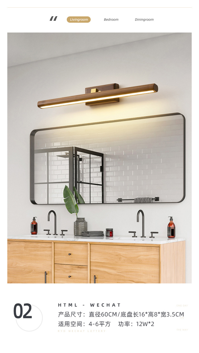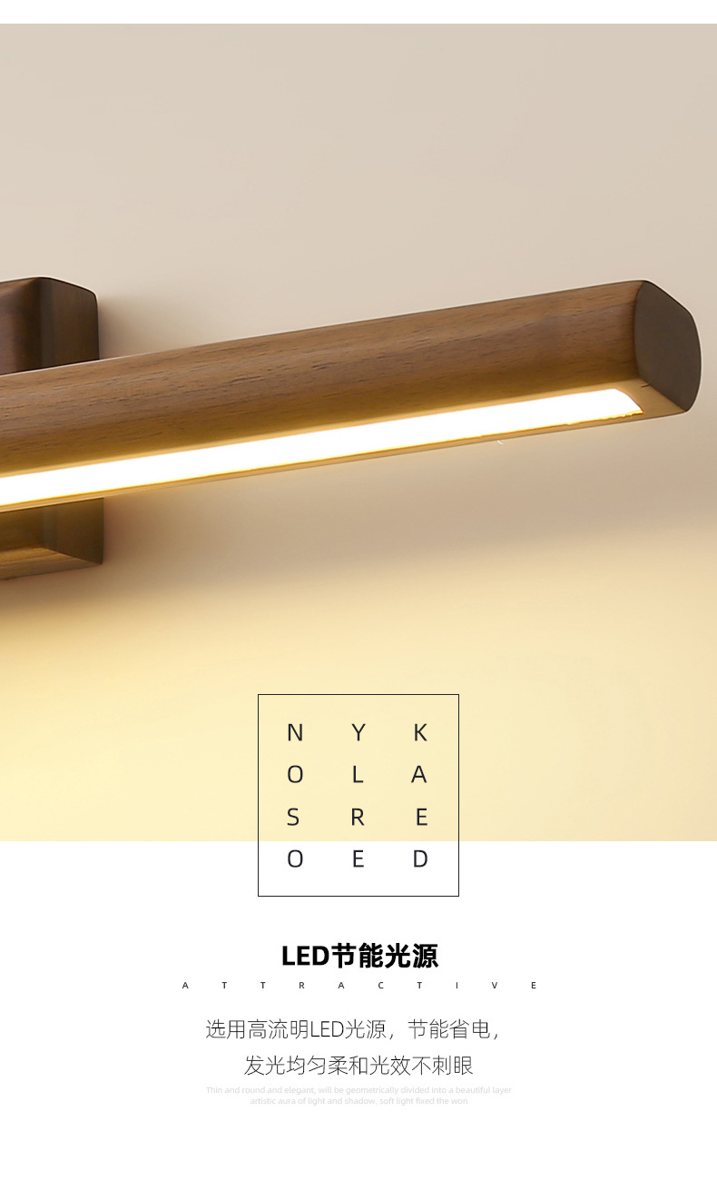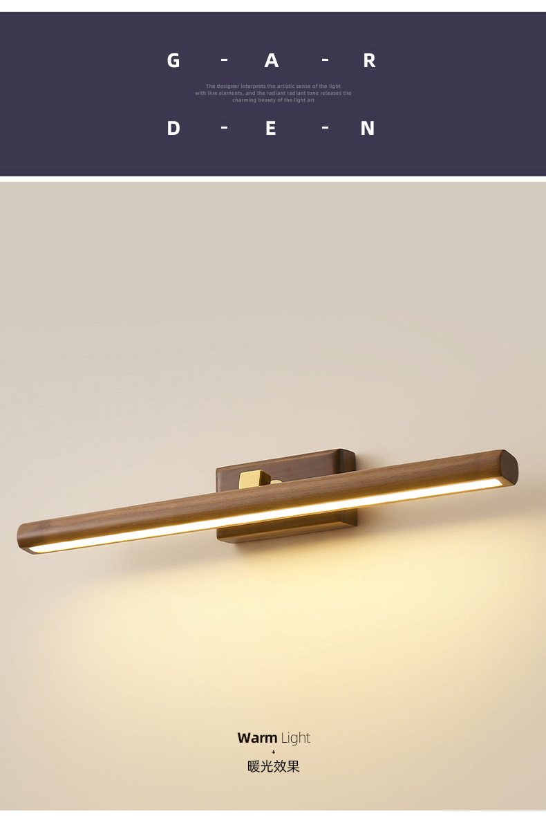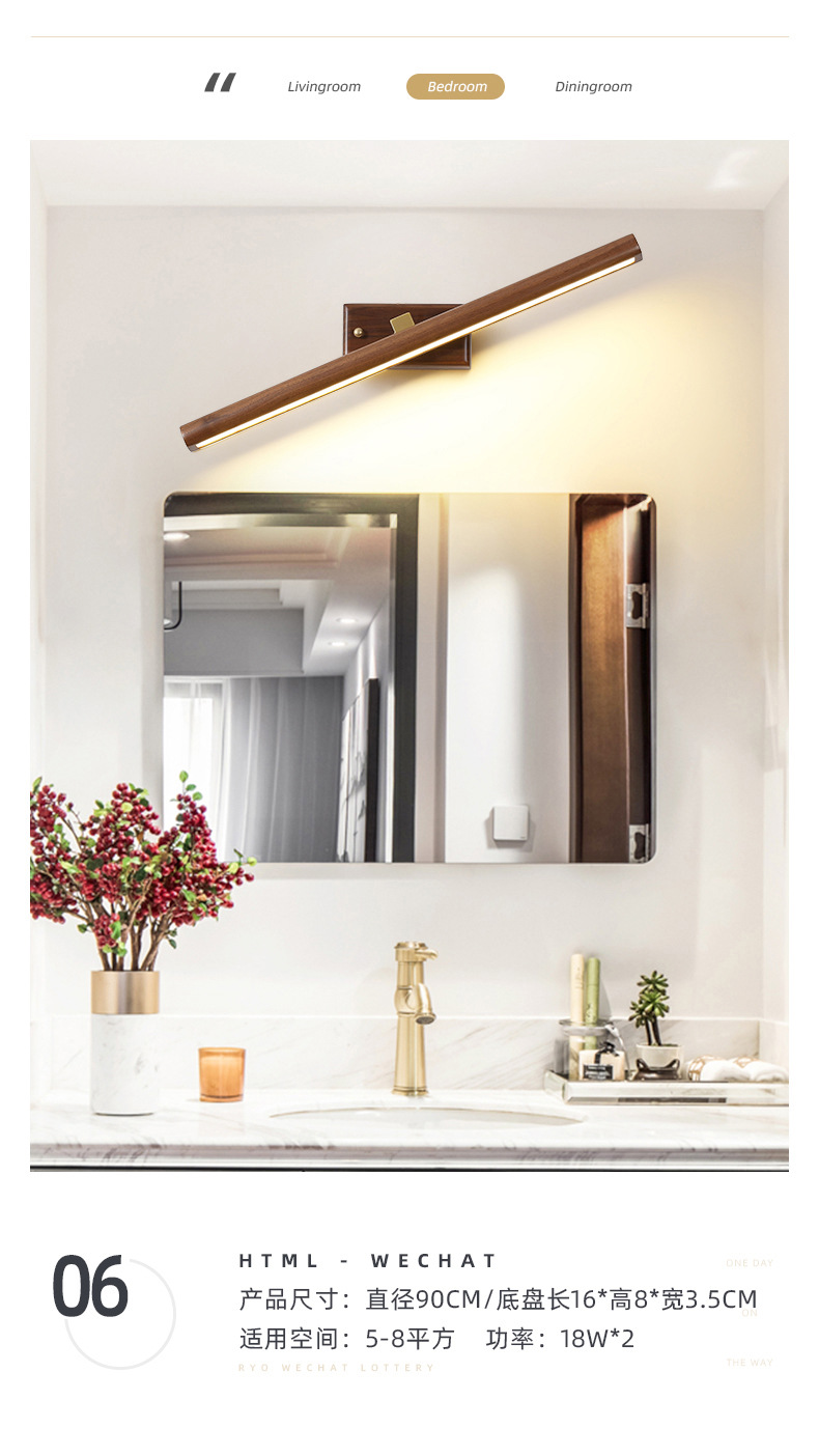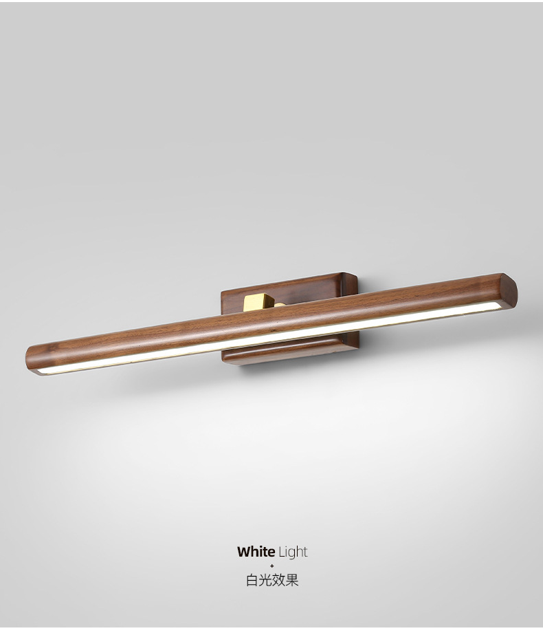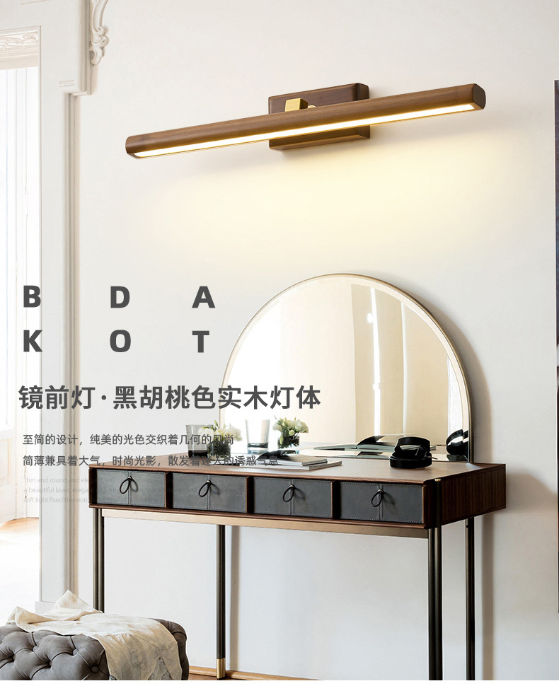 거울 헤드 라이트 현대 미니멀리스트 로그 긴 욕실 드레싱 테이블 벽 빛 고급 호두 침실 벽 램프