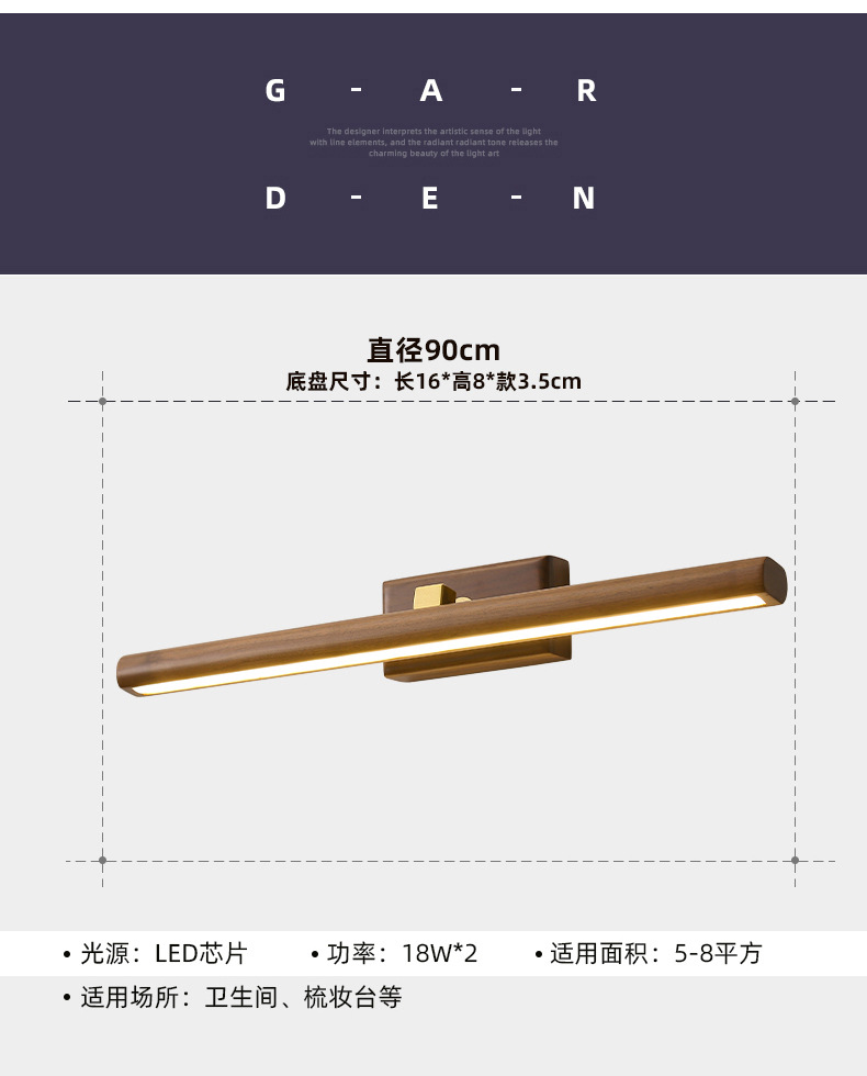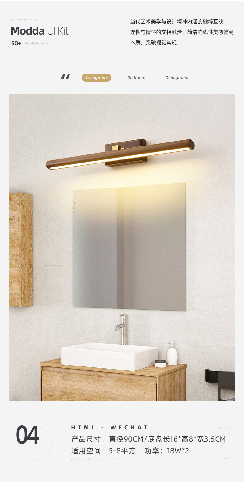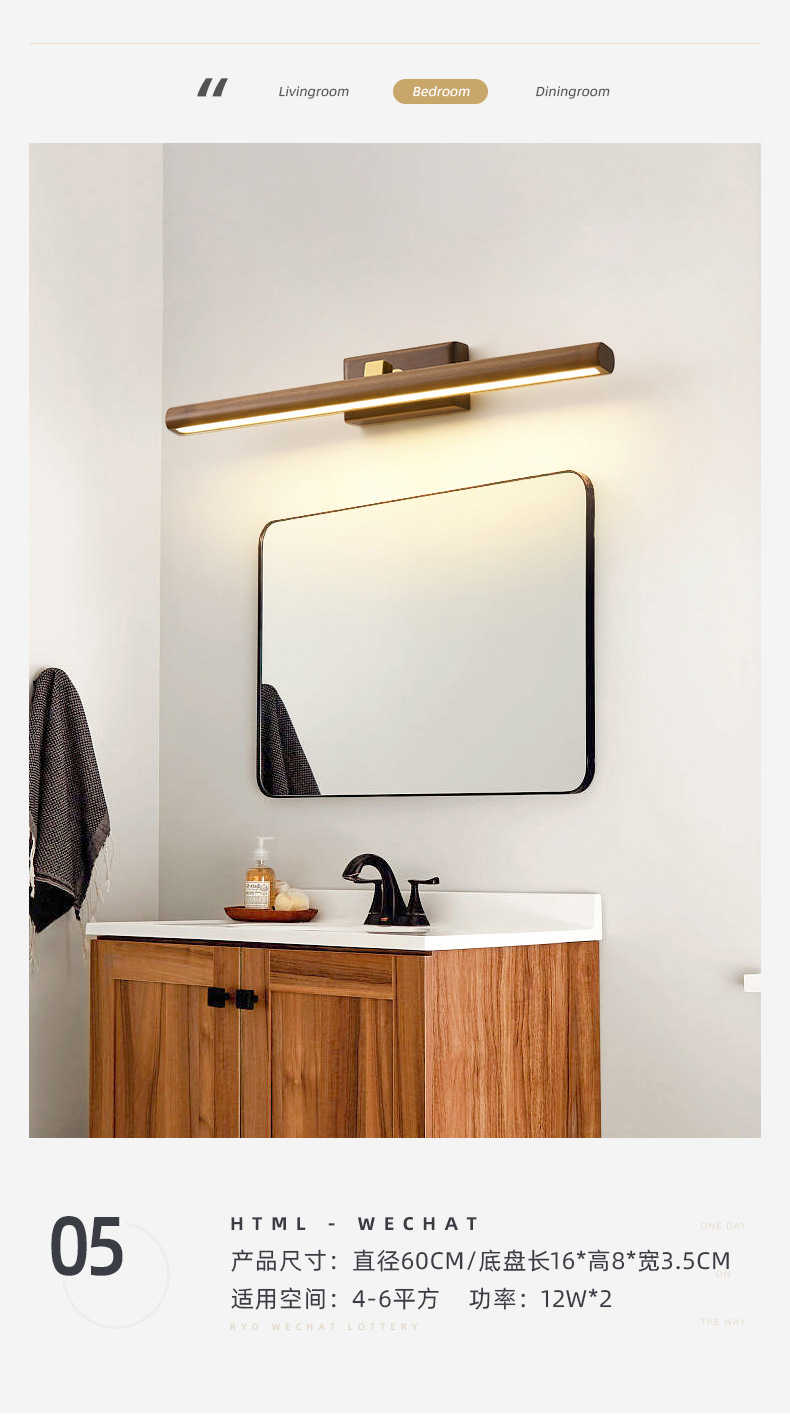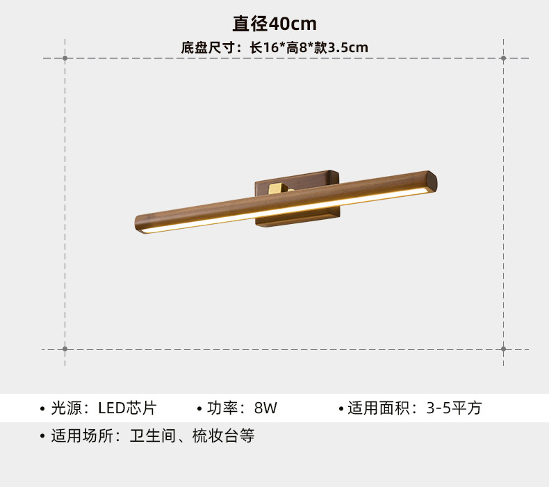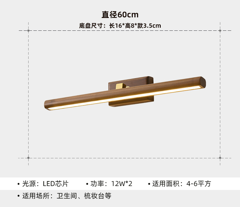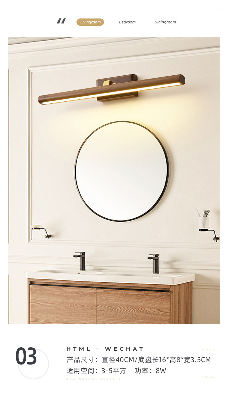거울 헤드 라이트 현대 미니멀리스트 로그 긴 욕실 드레싱 테이블 벽 빛 고급 호두 침실 벽 램프