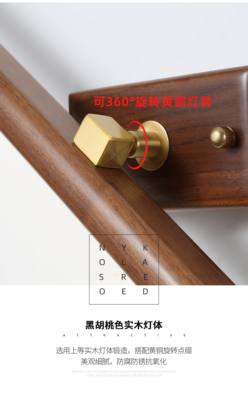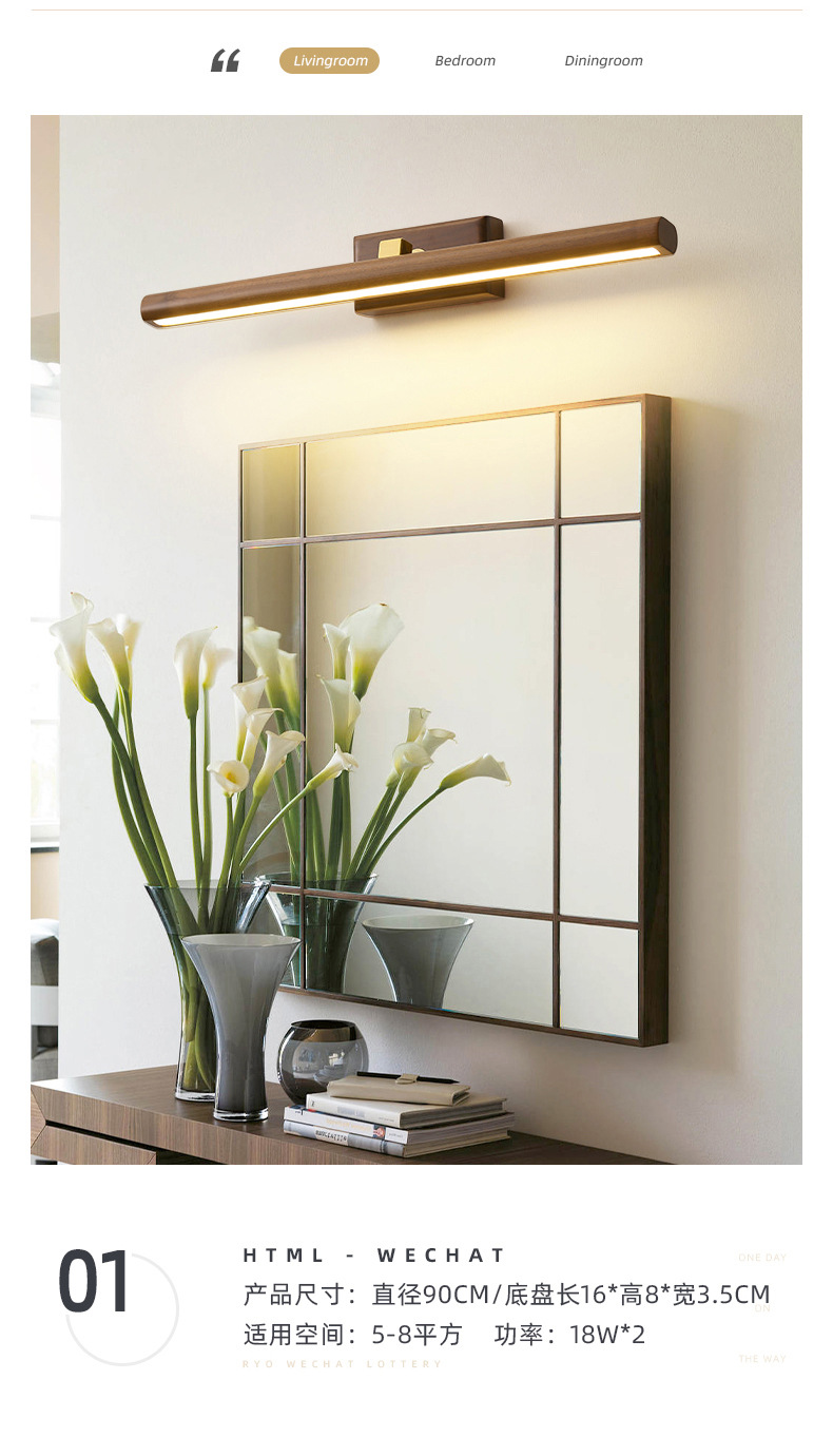 거울 헤드 라이트 현대 미니멀리스트 로그 긴 욕실 드레싱 테이블 벽 빛 고급 호두 침실 벽 램프스토어 가기