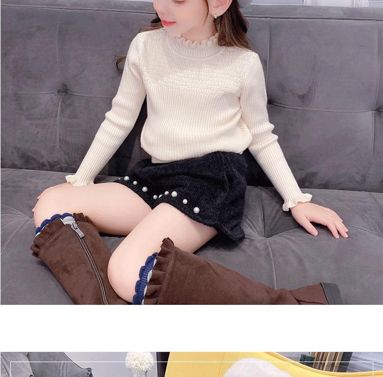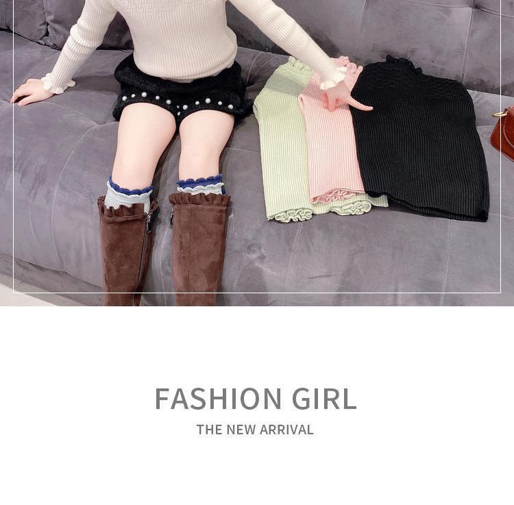 3세 여아 가을 레이스 스웨터 하프 터틀넥 2025 부드럽고 왁시한 5세 여아 니트 이너 레이어드 셔츠